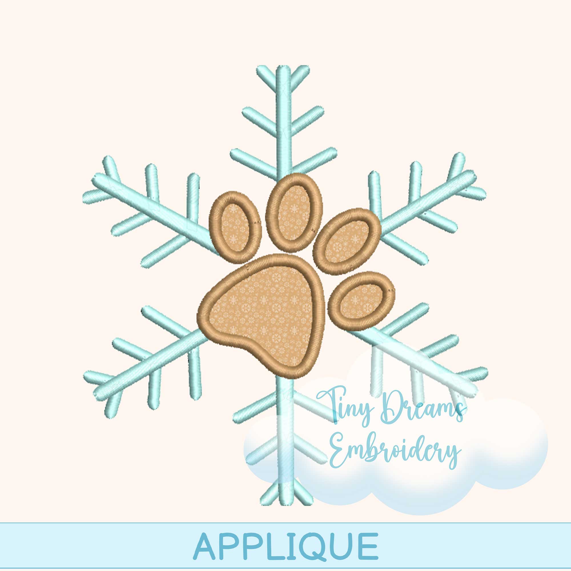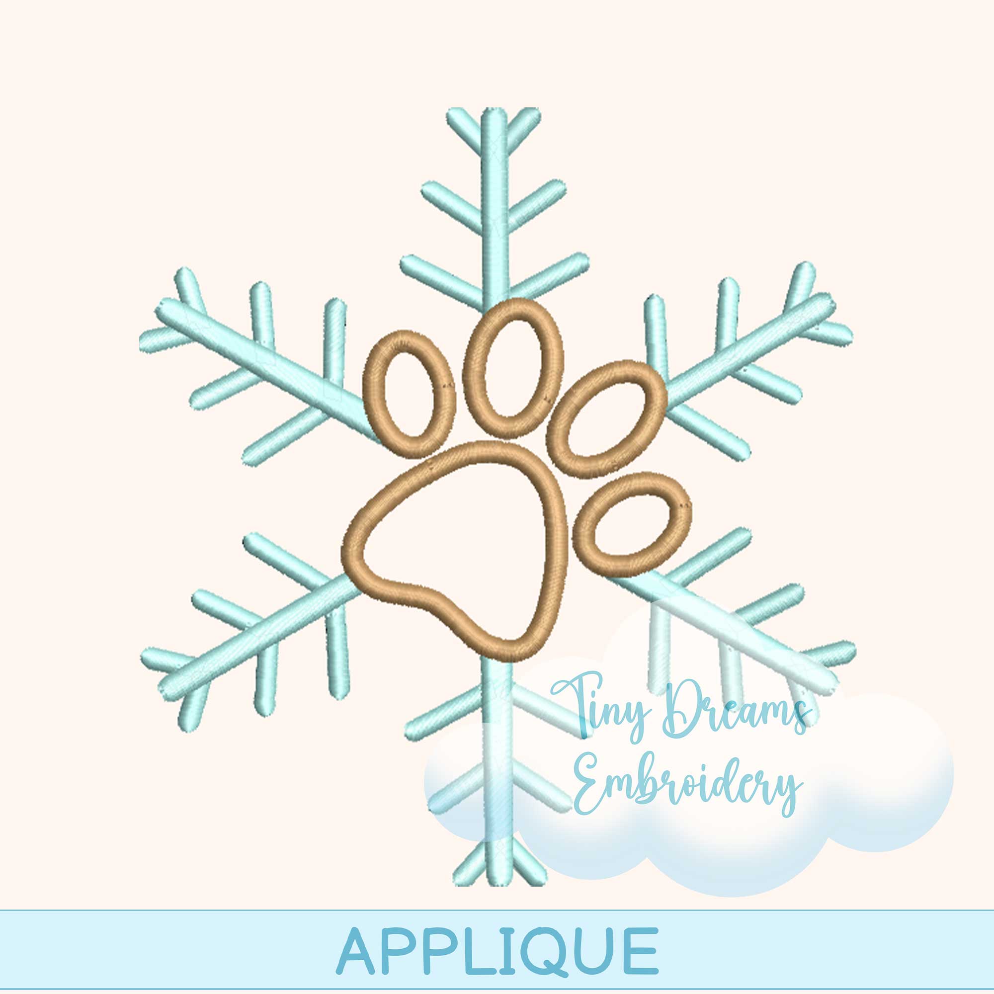 Winter Snowglake Dog Paw Print Applique, Christmas Machine Embroidery Design (Digital Download)
