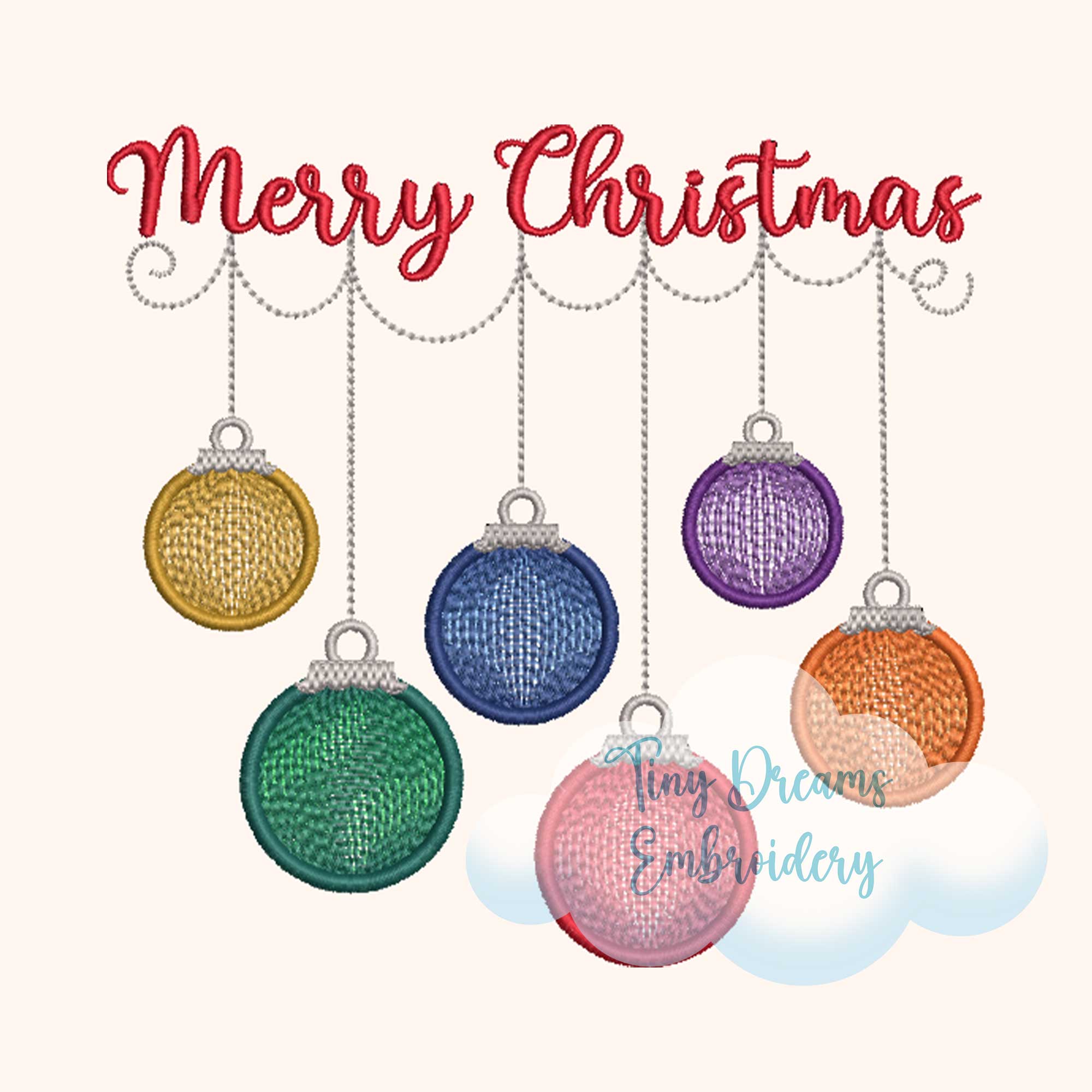 Christmas Ornament Applique Digital Machine Embroidery Design Merry Christmas Applique Embroidery Design Multicolor Garland Ornament Design