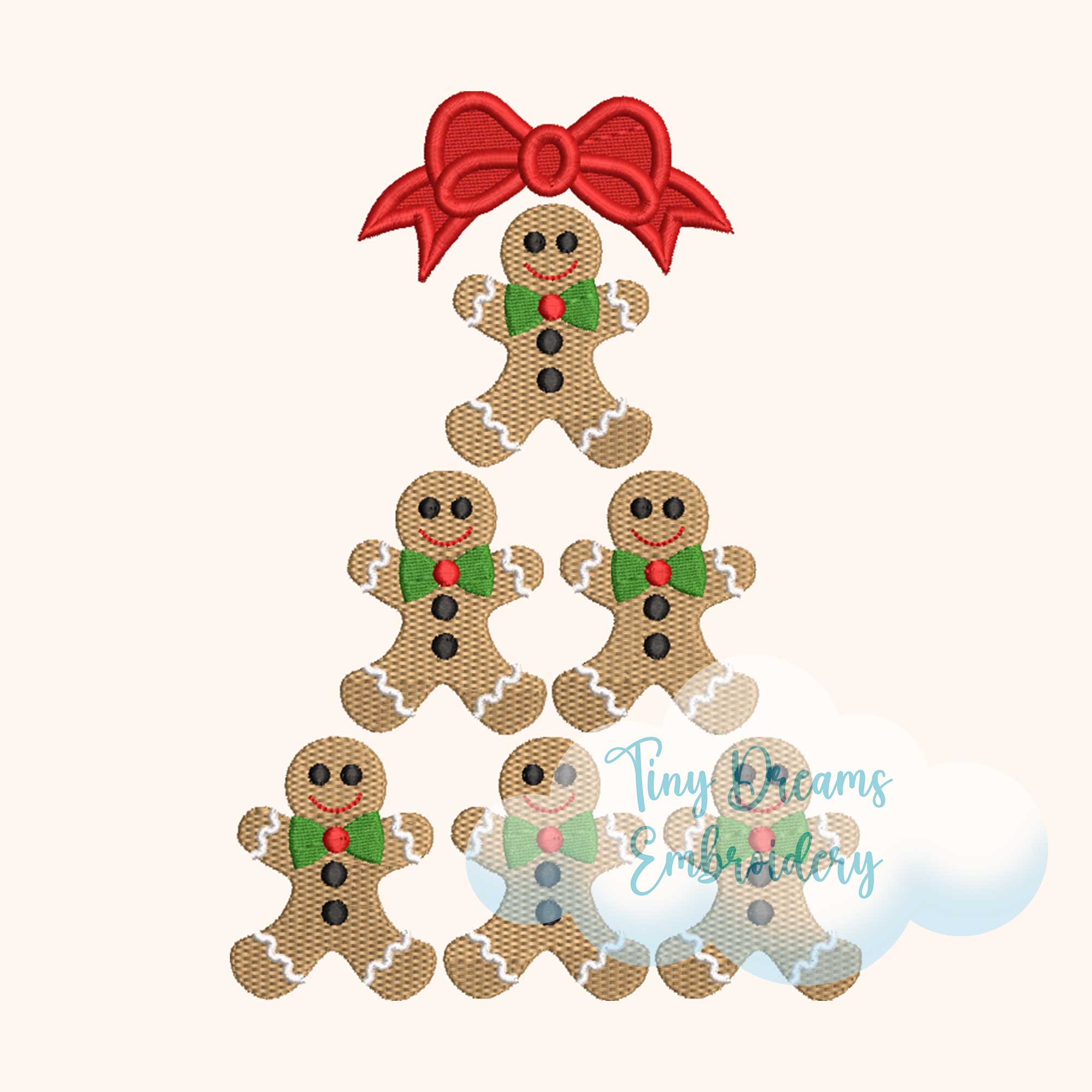 Gingerbread Cookie Christmas Tree Digital Machine Embroidery Design Christmas Bow Design Embroidery Christmas Bake Cookie Embroidery Design