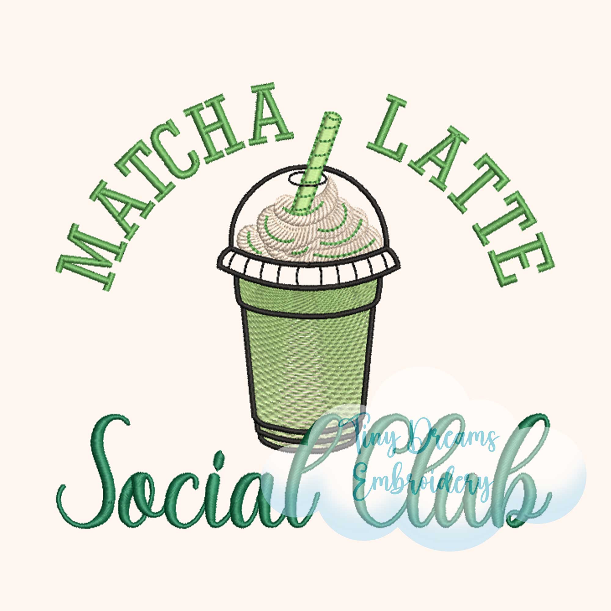 Matcha Latte Digital Machine Embroidery Design Social Club Design Embroidery Green Tea Embroidery Design Matcha Green Tea Embroidery Latte