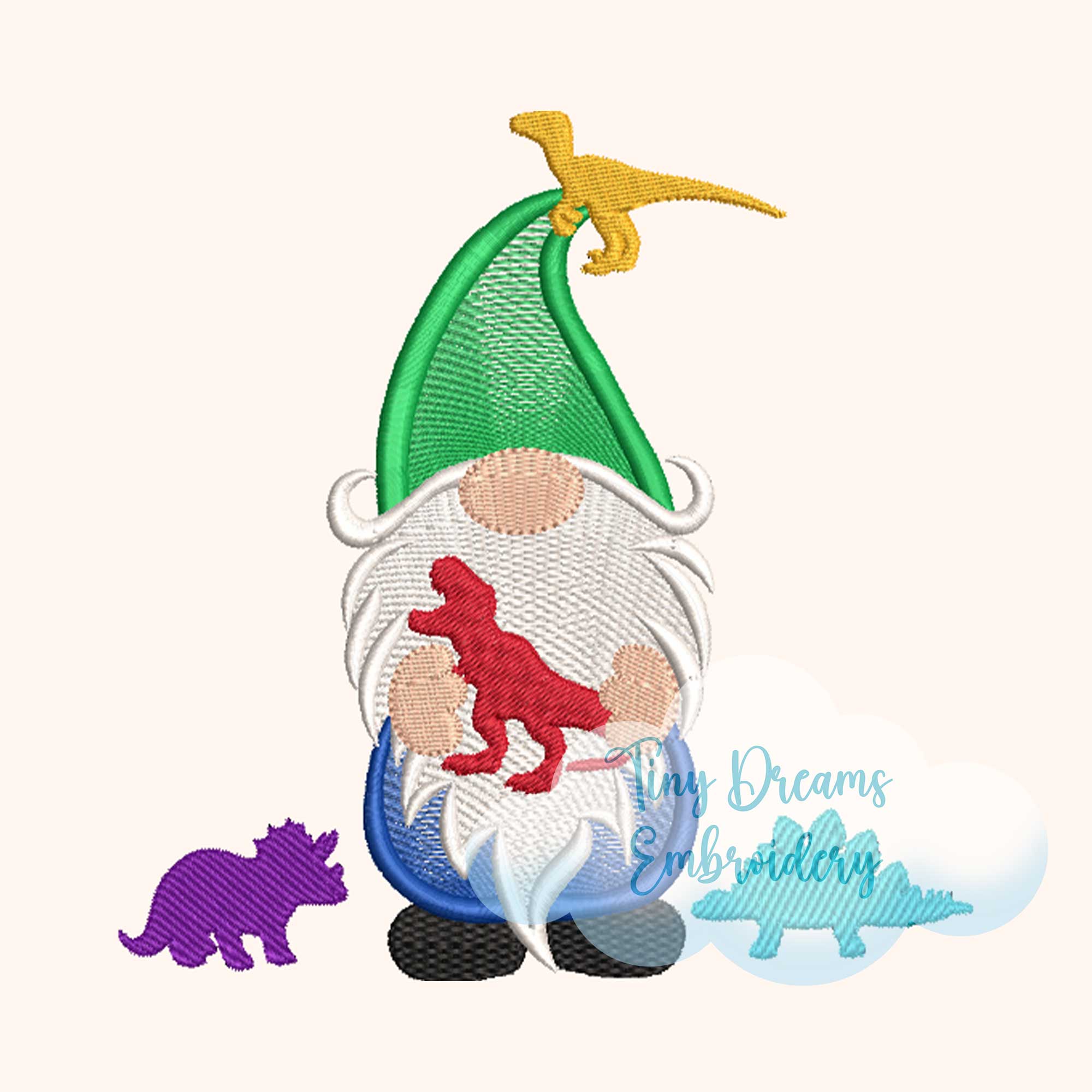 Dinosaur Gnome Digital Machine Embroidery Design TRex Embroidery Design Triceratops Embroidery Design Cute Dinosaur Gnome Embroidery Design