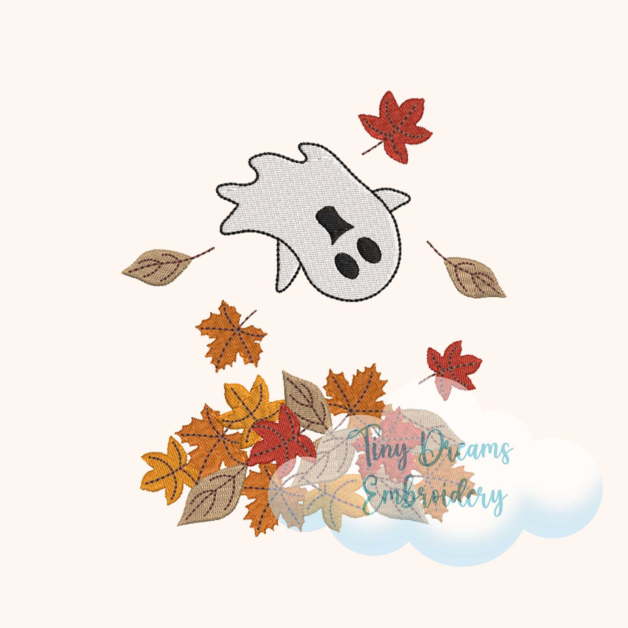 Ghost Halloween Fall Autumn Leaves Embroidery Design: Fall Autumn Leaves Blowing (Digital Download)