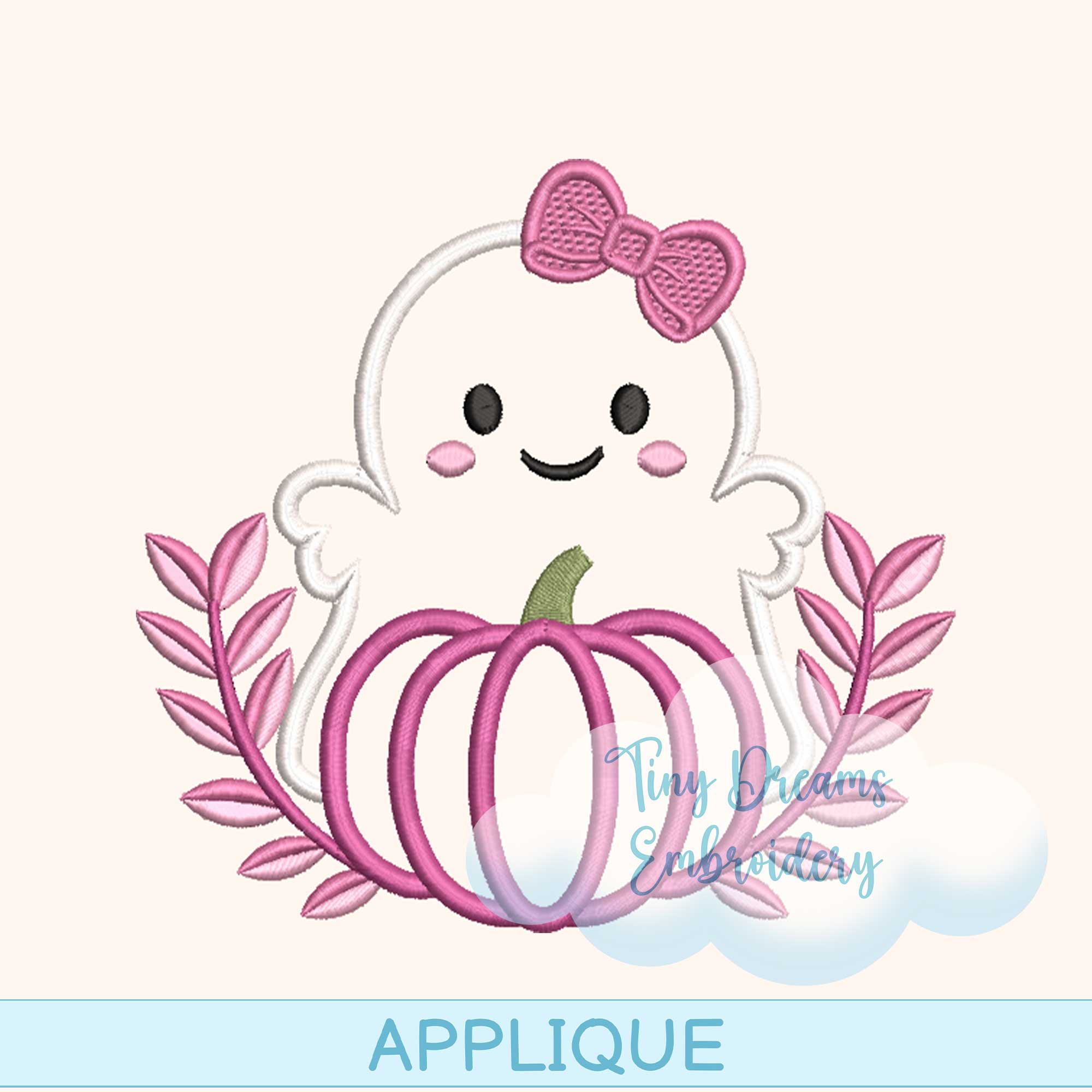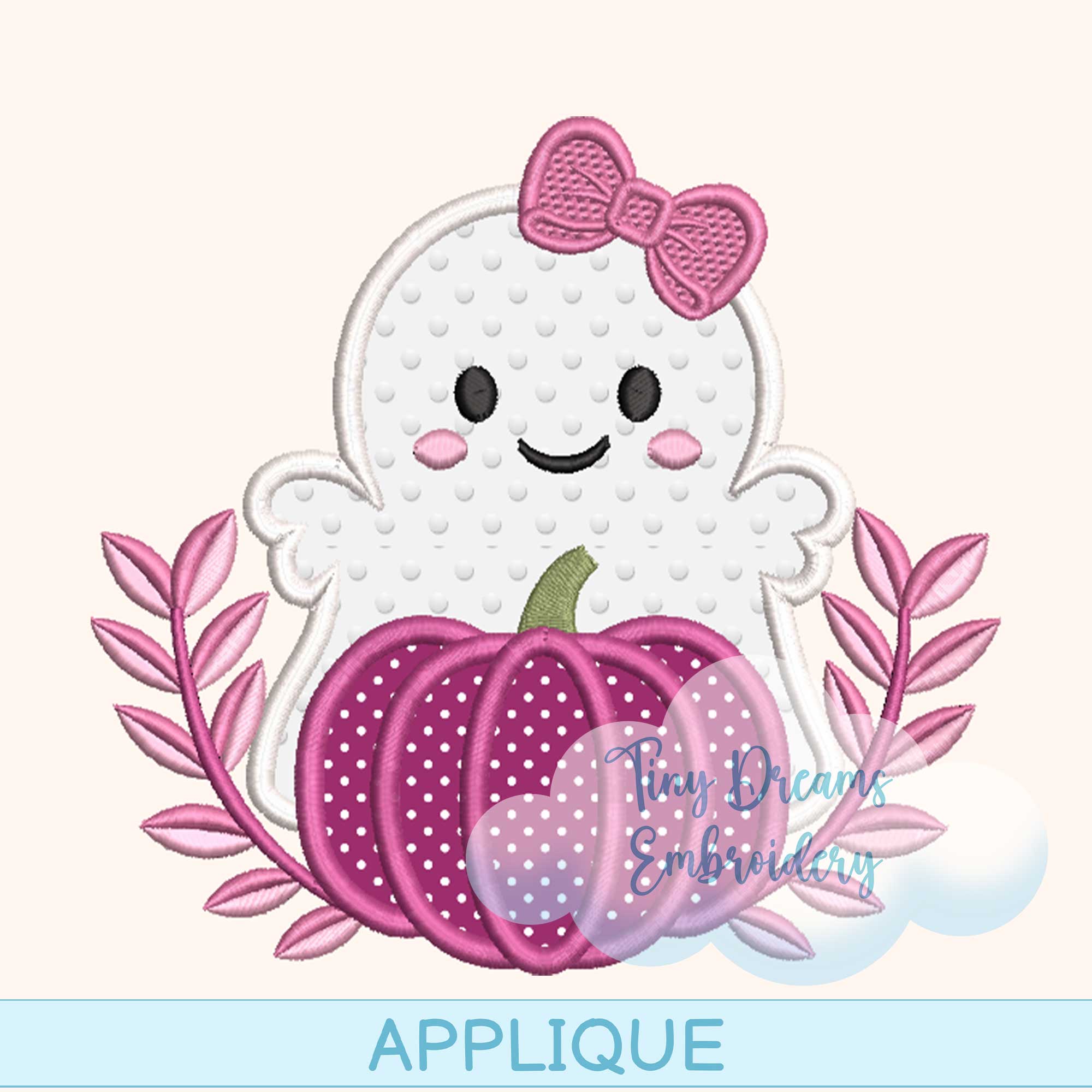 Cute Pink Breast Cancer Ghost Applique: Machine Pumpkin Halloween Embroidery Design (Digital Download)