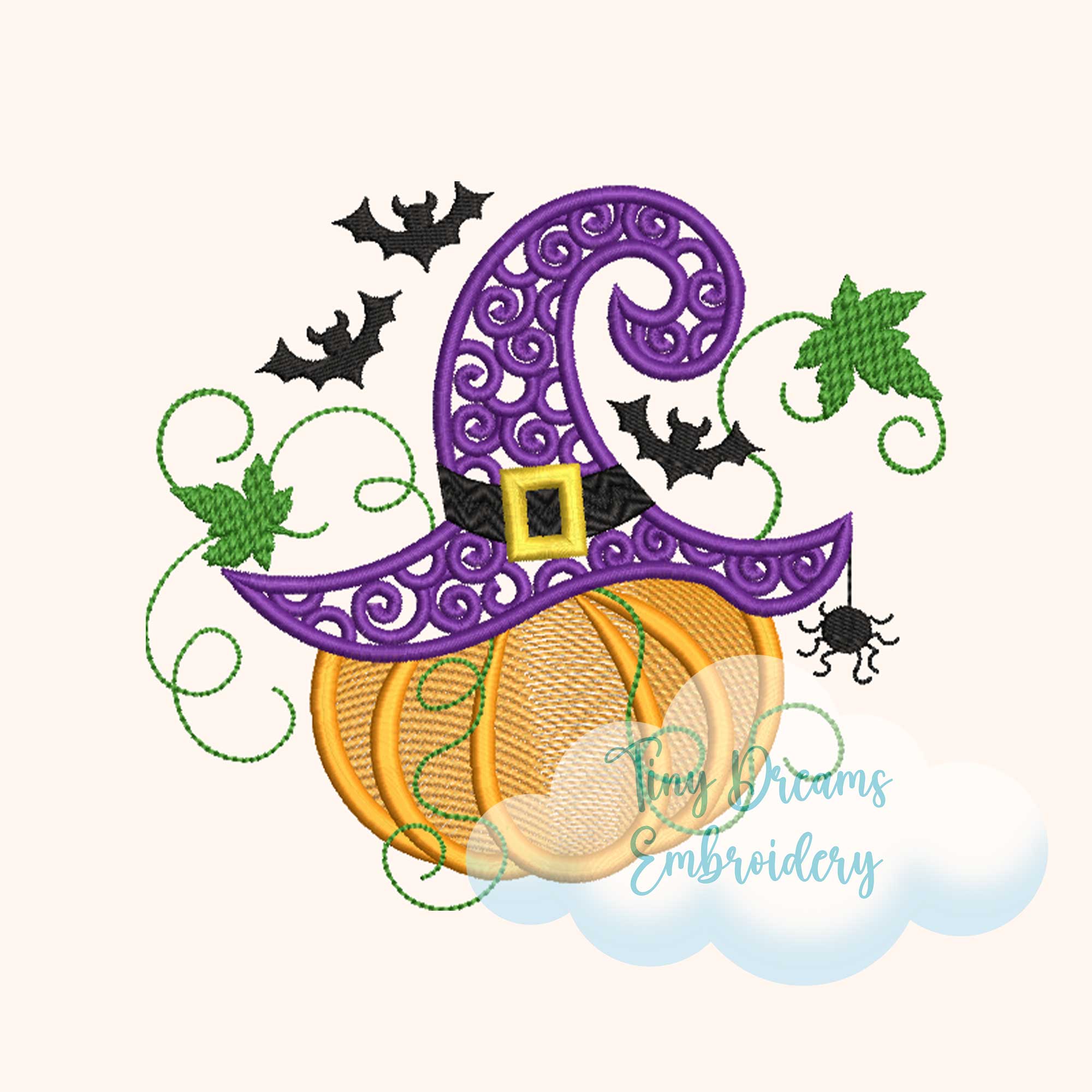Pumpkin Digital Machine Embroidery Design Halloween Embroidery Design Witch Hat Embroidery Design Fall Pumpkin Embroidery Design Bat Design