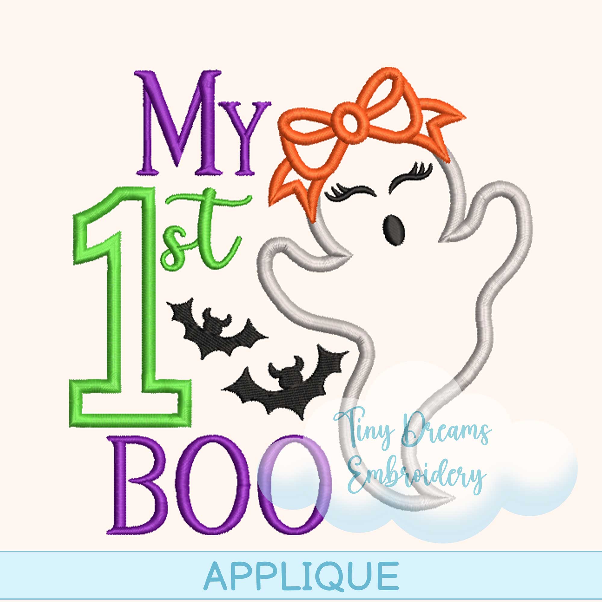 My First Boo Ghost Applique Digital Machine Embroidery Design Girl Ghost Embroidery Design Applique Scary Halloween Girl Design Embroidery