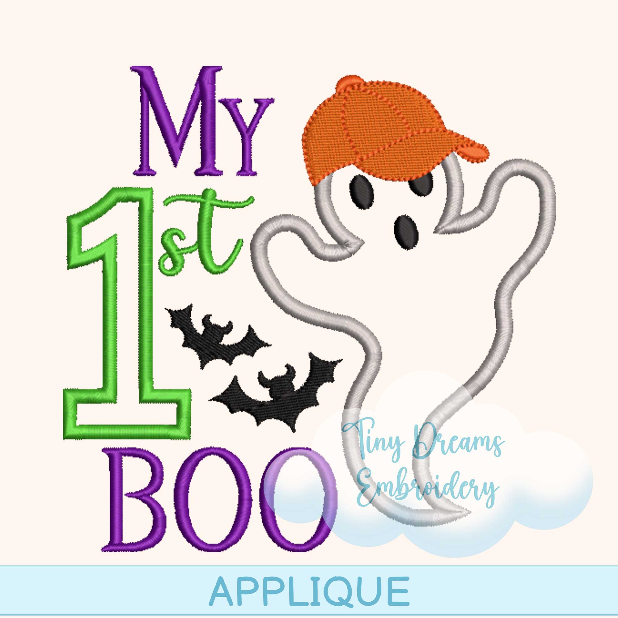 My First Boo Ghost Applique Digital Machine Embroidery Design Boy Ghost Embroidery Design Applique Scary Halloween Boy Design Embroidery