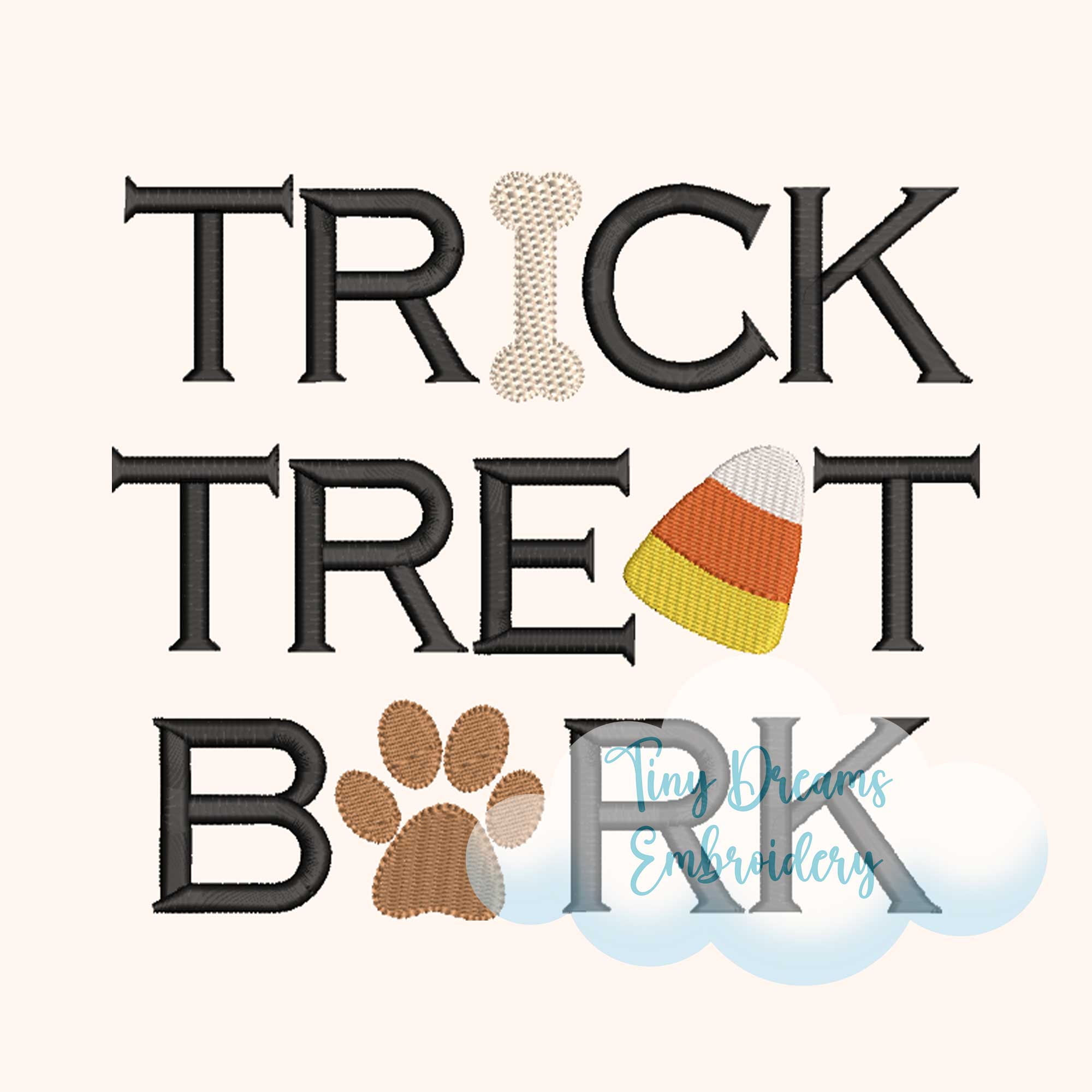 Trick Treat Bark Digital Machine Embroidery Design Halloween Candy Design Embroidery Dog Paw Print Design Spooky Season Embroidery Dog Pet