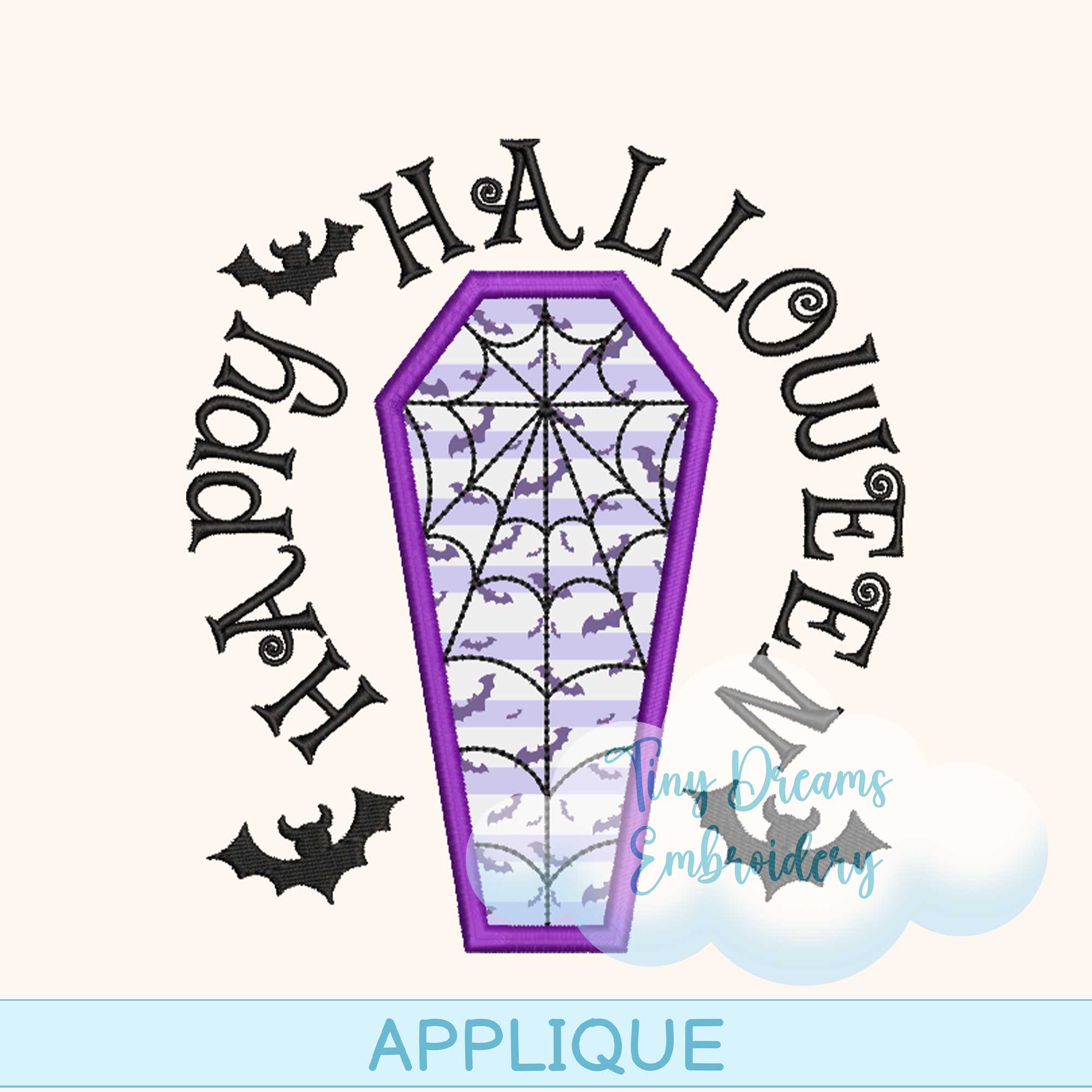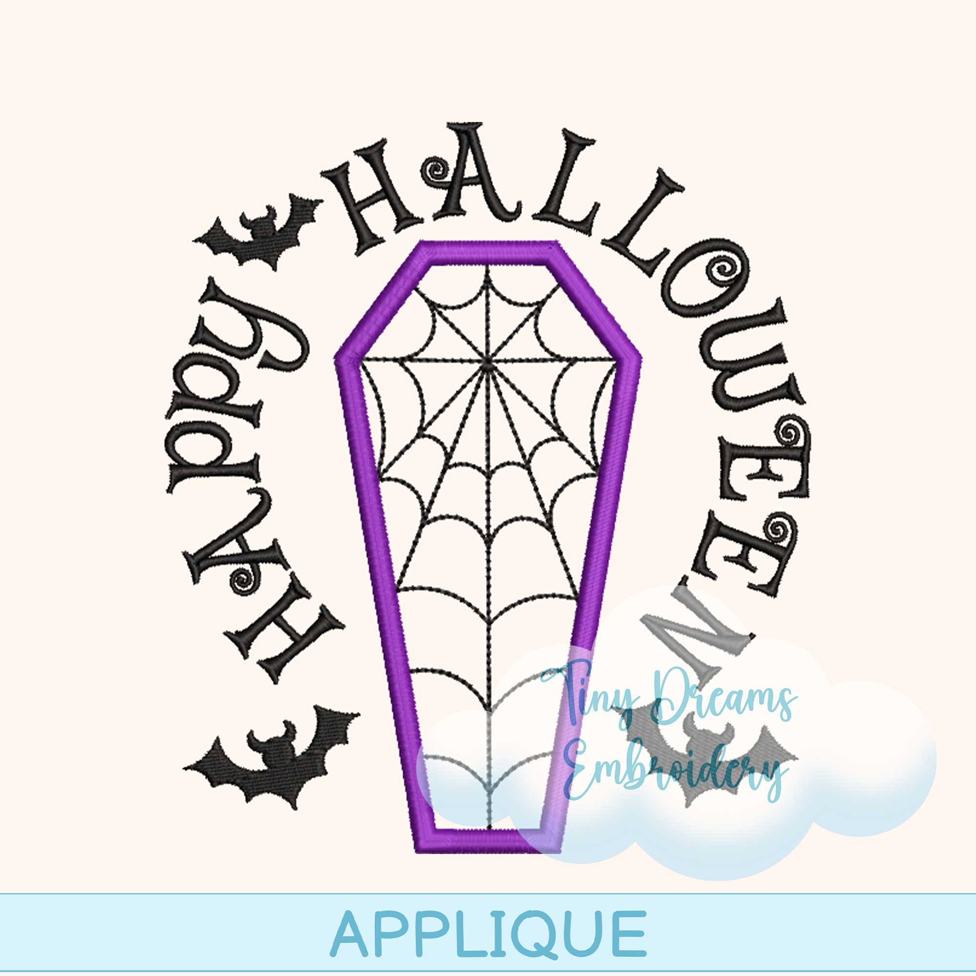 Spiderweb Coffin Applique Digital Machine Embroidery Design Halloween Bat Embroidery Design Applique Scary Halloween Design Bat Embroidery