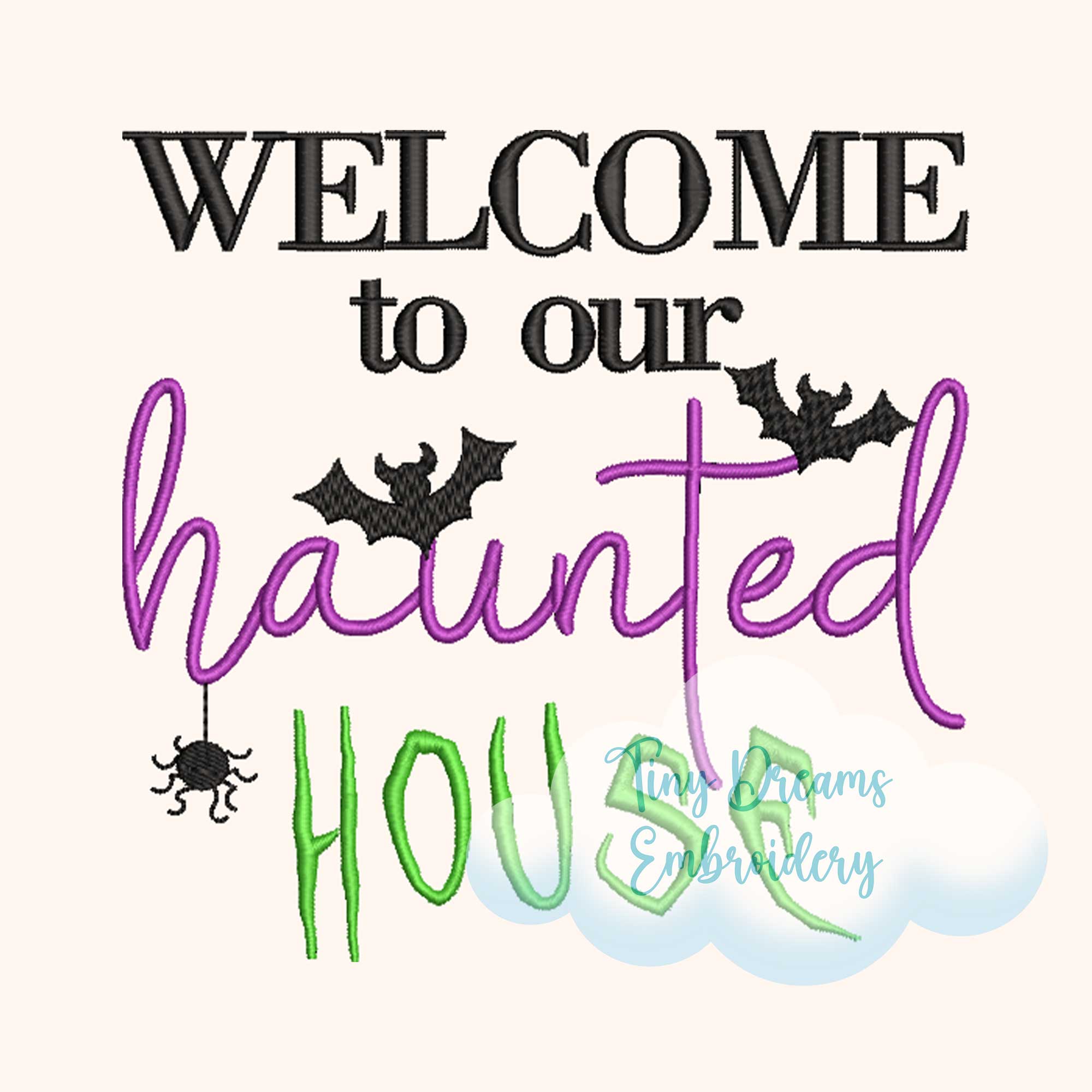 Welcome Home Digital Machine Embroidery Design Haunted House Design Embroidery Bat Embroidery Design Halloween Spider Embroidery Design