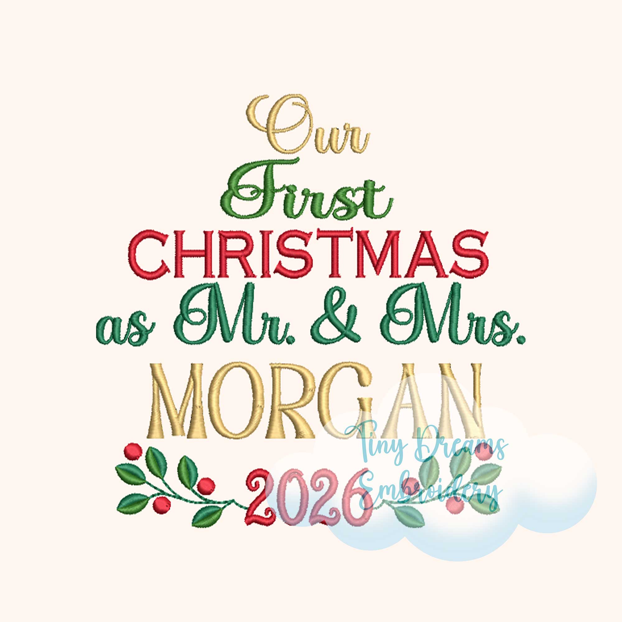 Our First Christmas Digital Machine Embroidery Design Mr Mrs Custom Monogram Embroidery Design Husband Wife Personalized Name Embroidery