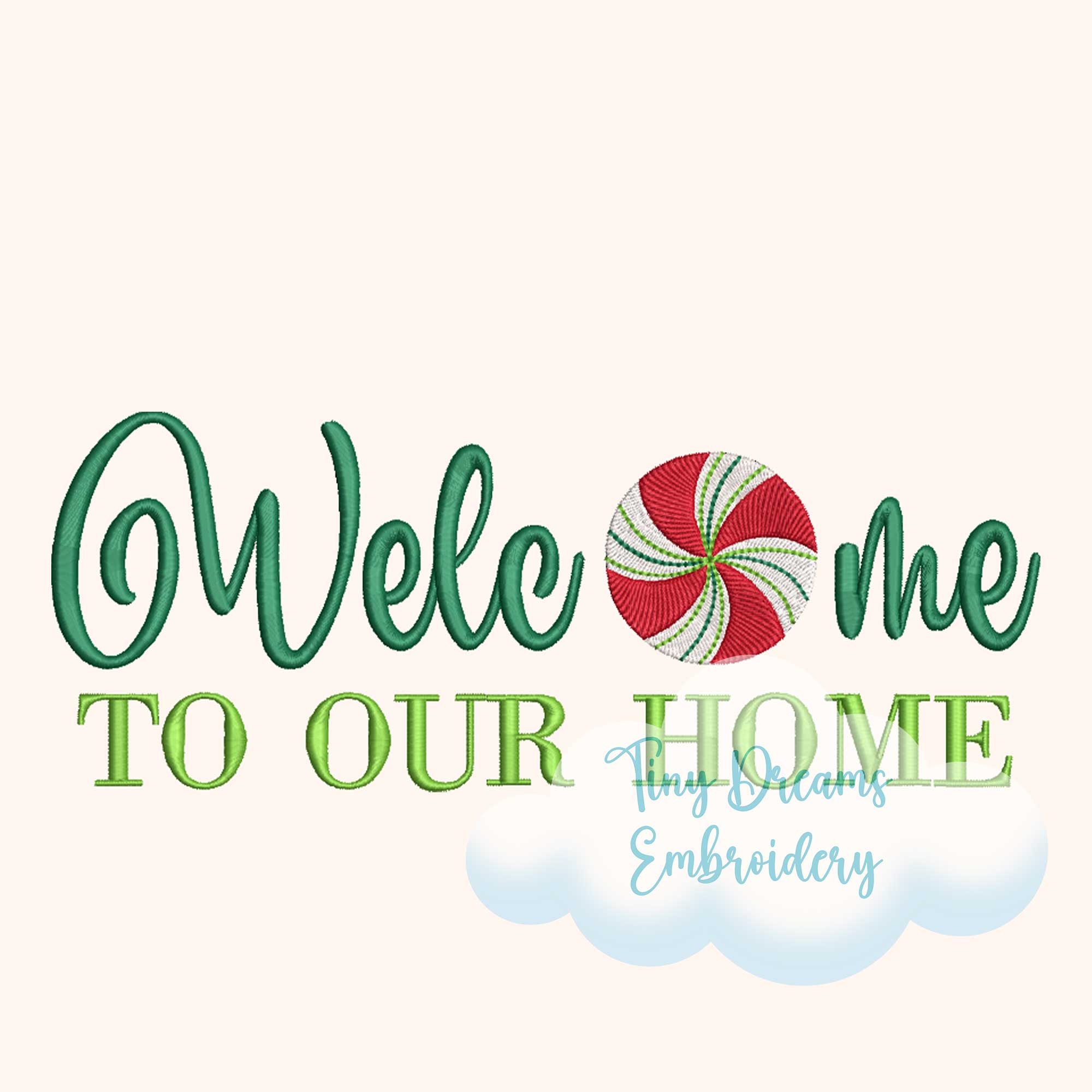 Welcome Home Digital Machine Embroidery Design Christmas Welcome Design Embroidery Peppermint Candy Embroidery Design Holiday Season Design