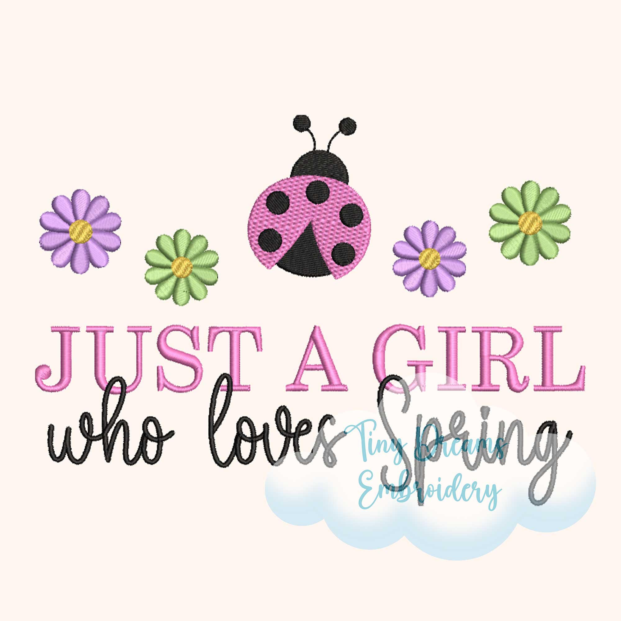Girl Loves Spring Digital Machine Embroidery Design Ladybug Embroidery Design Daisy Floral Embroidery Design Flower Spring Embroidery Design