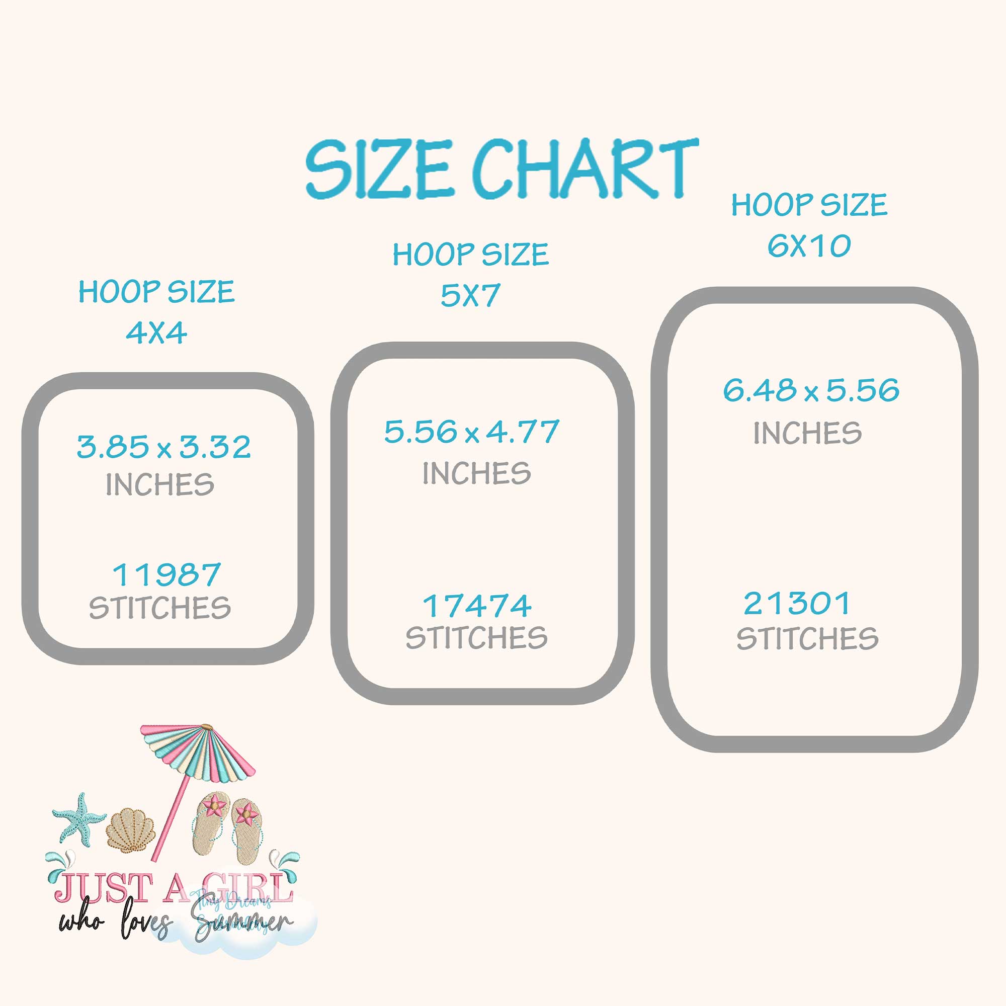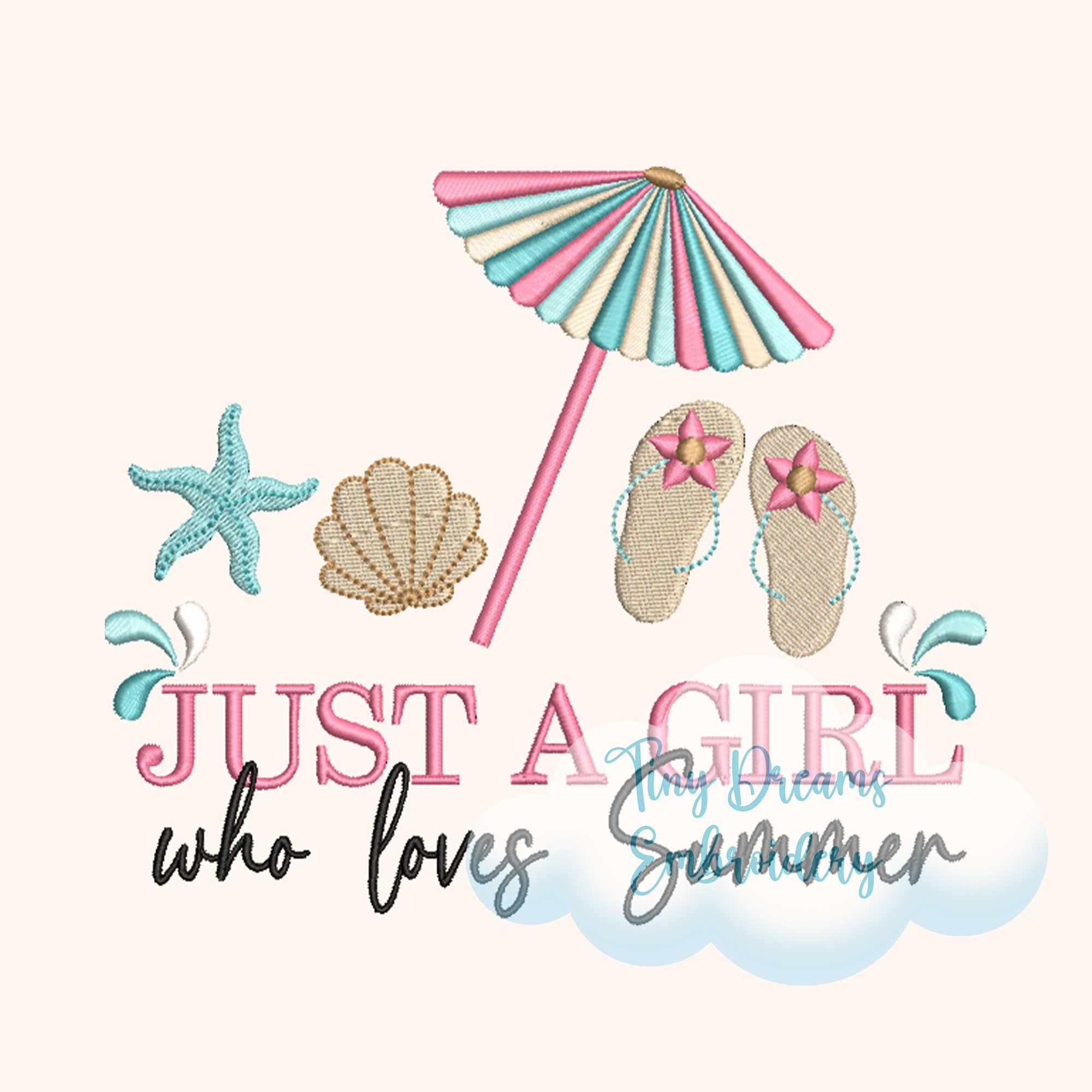 Girl Loves Summer Digital Machine Embroidery Design Flip Flop Beach Design Embroidery Seashell Embroidery Design Summer Season Embroidery