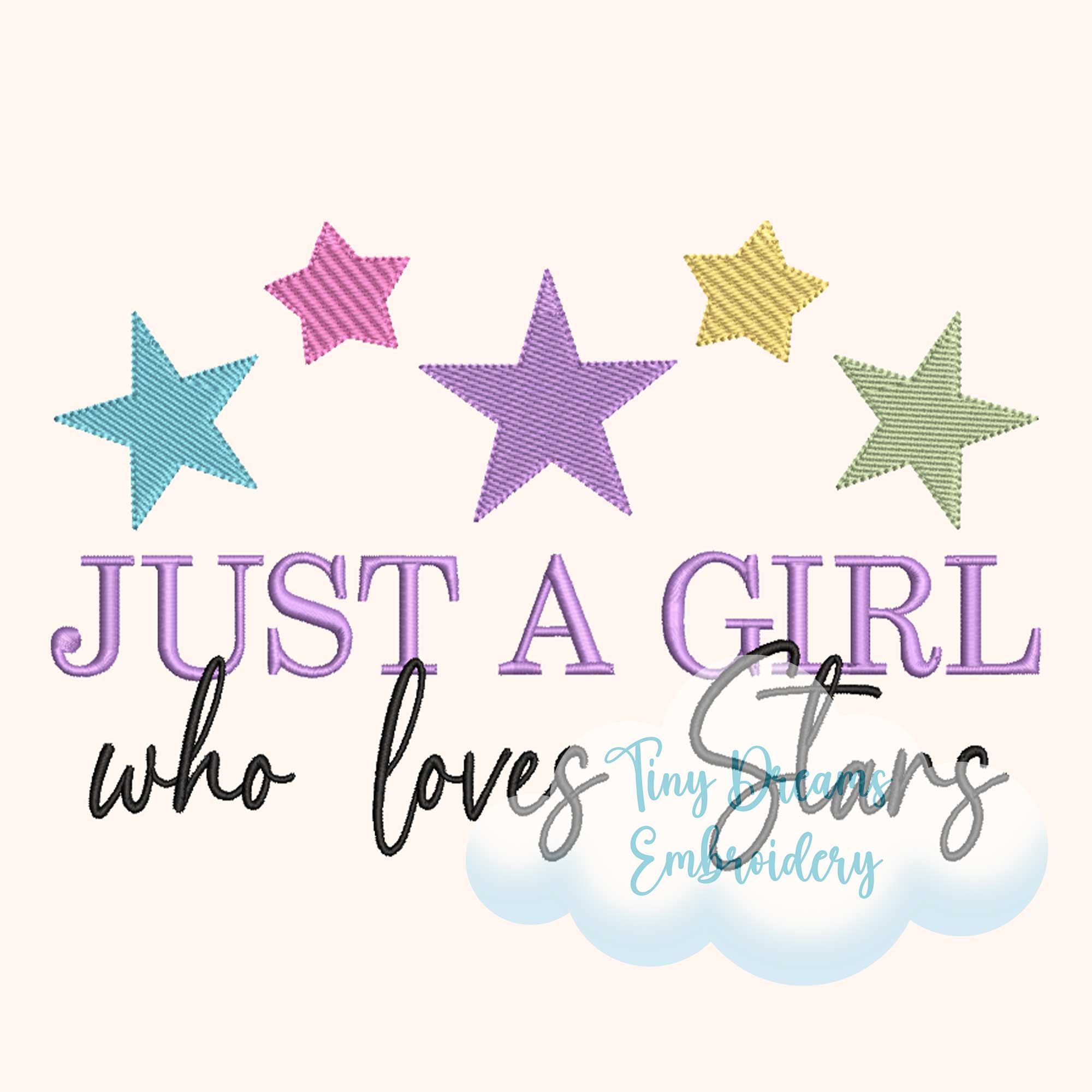 Girl Loves Stars Digital Machine Embroidery Design Sky Stars Design Embroidery Glitter Stars Embroidery Design Stars Lover Girl Embroidery