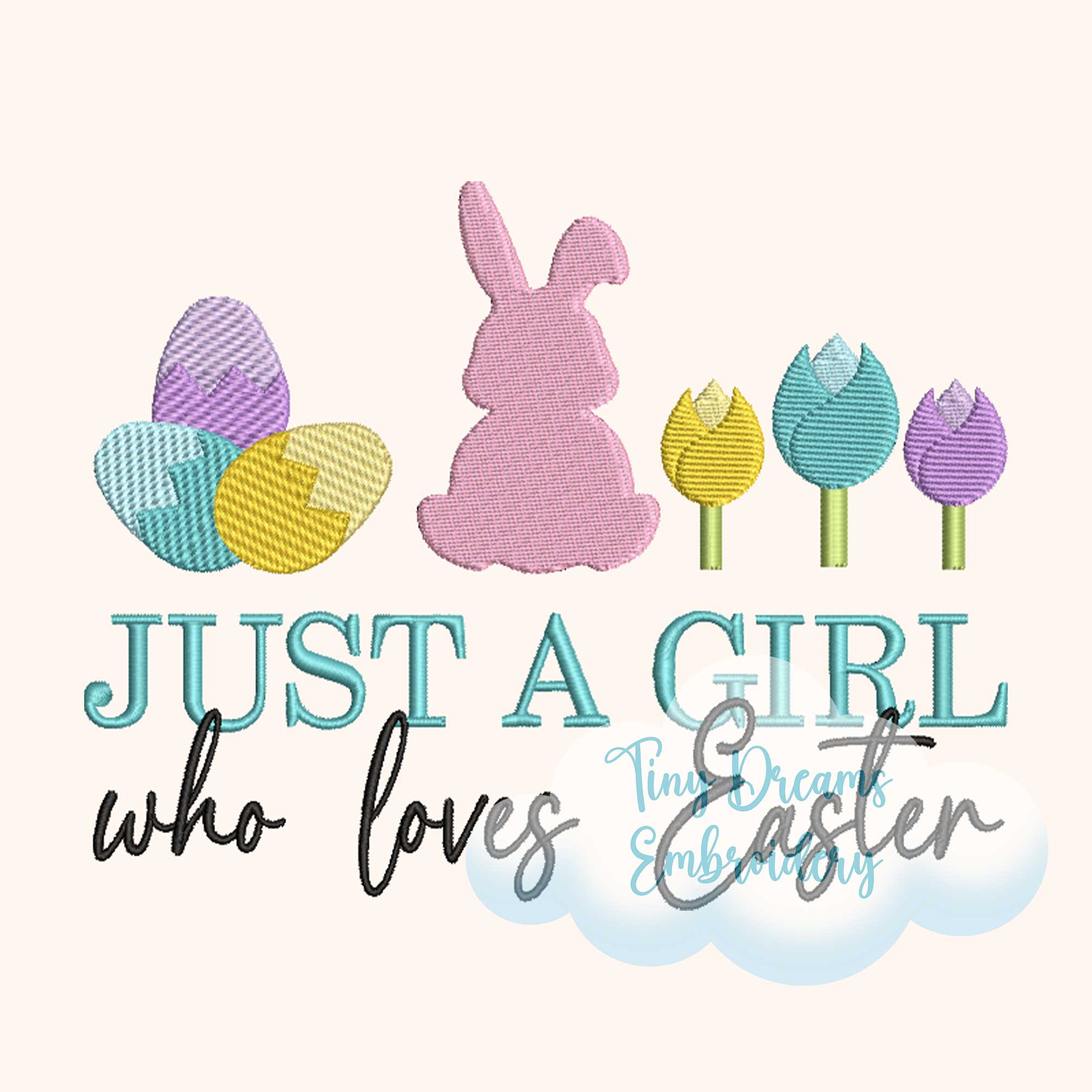 Girl Loves Easter Digital Machine Embroidery Design Easter Egg Design Embroidery Easter Bunny Embroidery Design Happy Easter Embroidery Girl