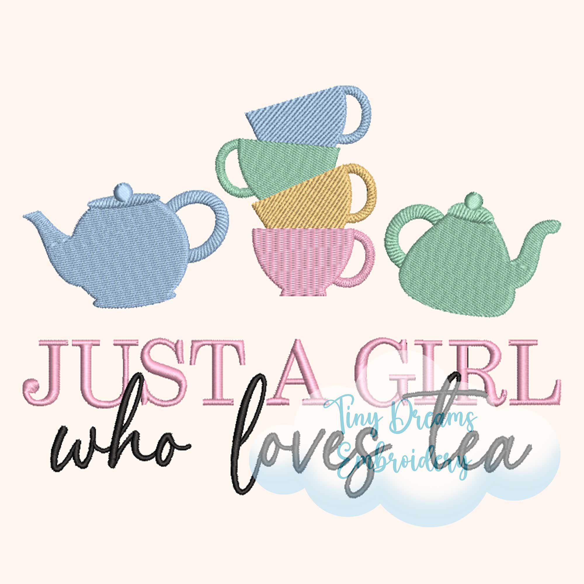 Girl Loves Tea Digital Machine Embroidery Design Cup Tea Design Embroidery Teapot Embroidery Design Kitchen Tea Party Embroidery Tea Lover
