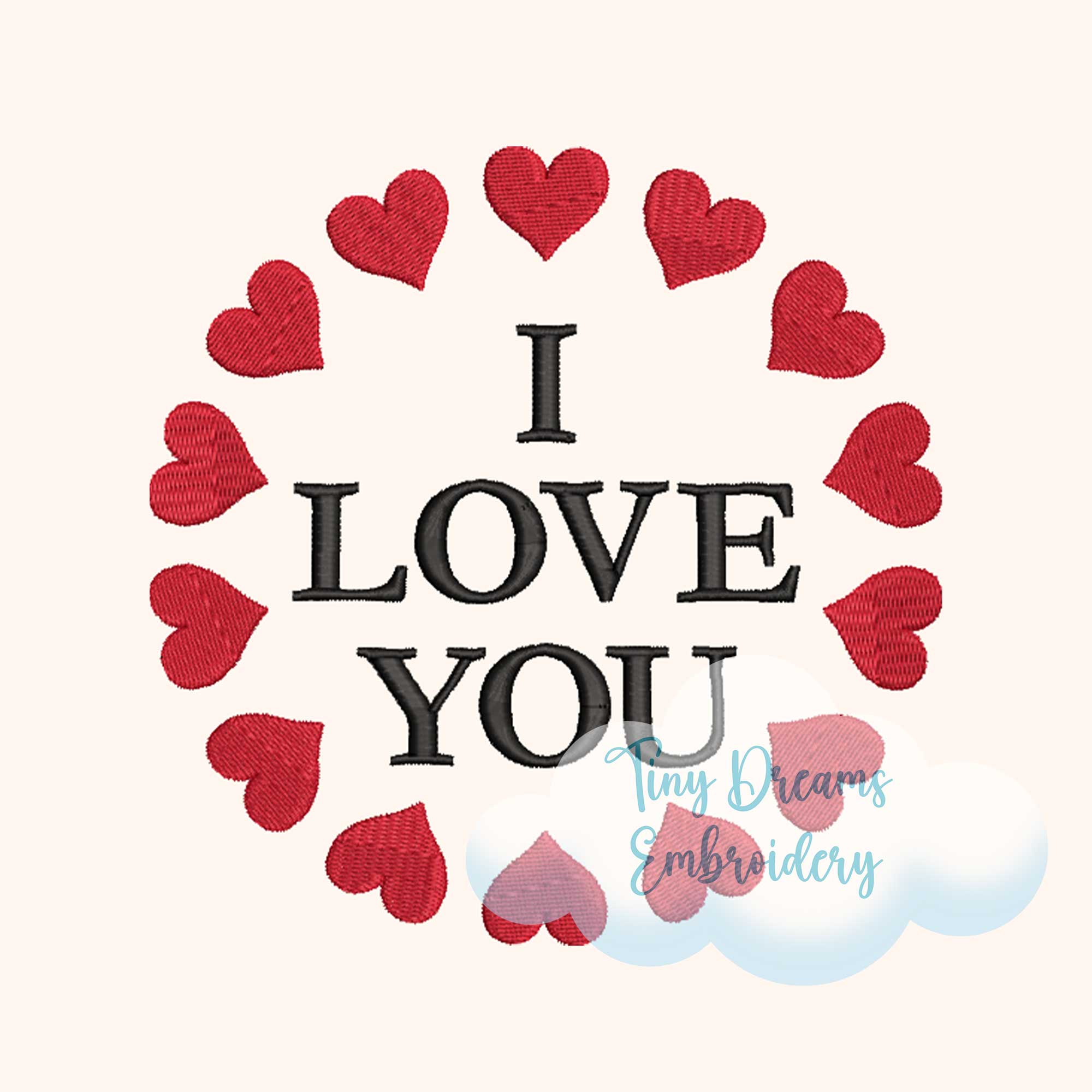 I Love You Digital Machine Embroidery Design Love Heart Embroidery Design Valentine Love Design Embroidery Heart Circle Love Embroidery