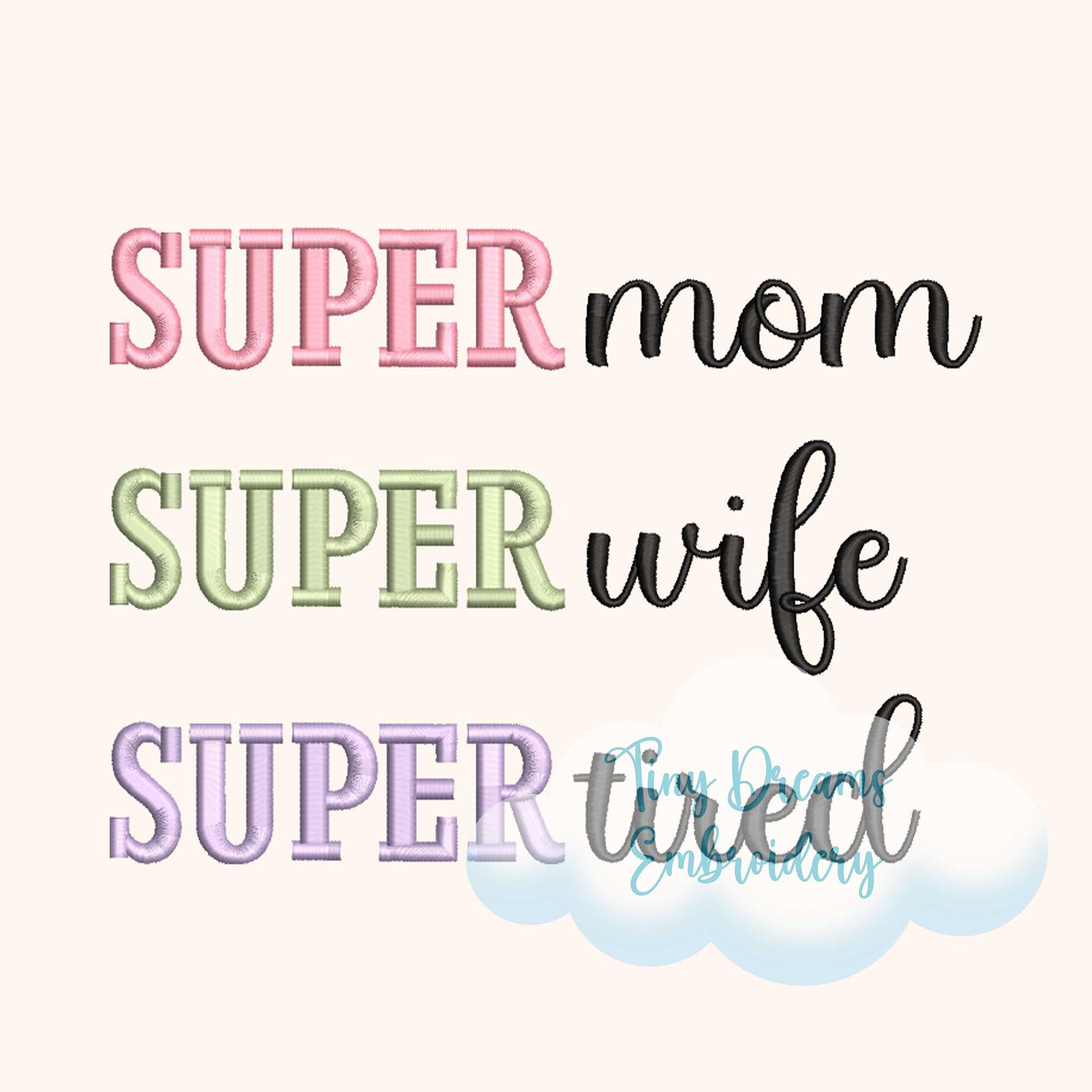 Super Mom Digital Machine Embroidery Design Mothers Day Design Embroidery Mommy Embroidery Design Super Wife Embroidery Design Super Tired