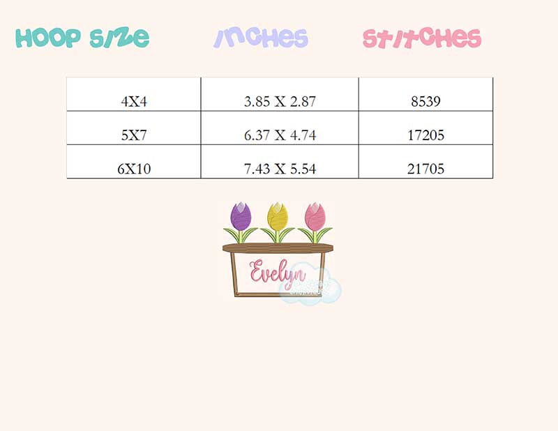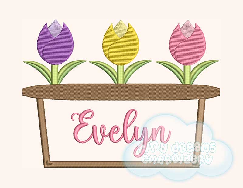 Spring tulips in flowerpot name/monogram (name/monogram/font not included) embroidery design