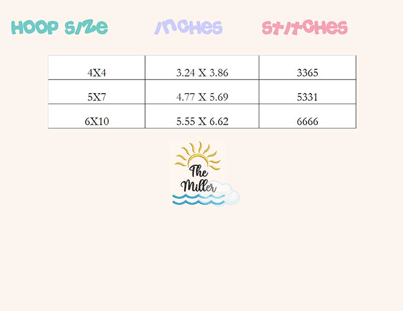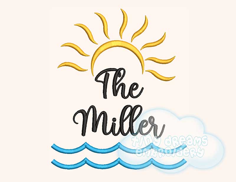 Summer beach waves and sun name/monogram (name/monogram/font not included) digital embroidery design