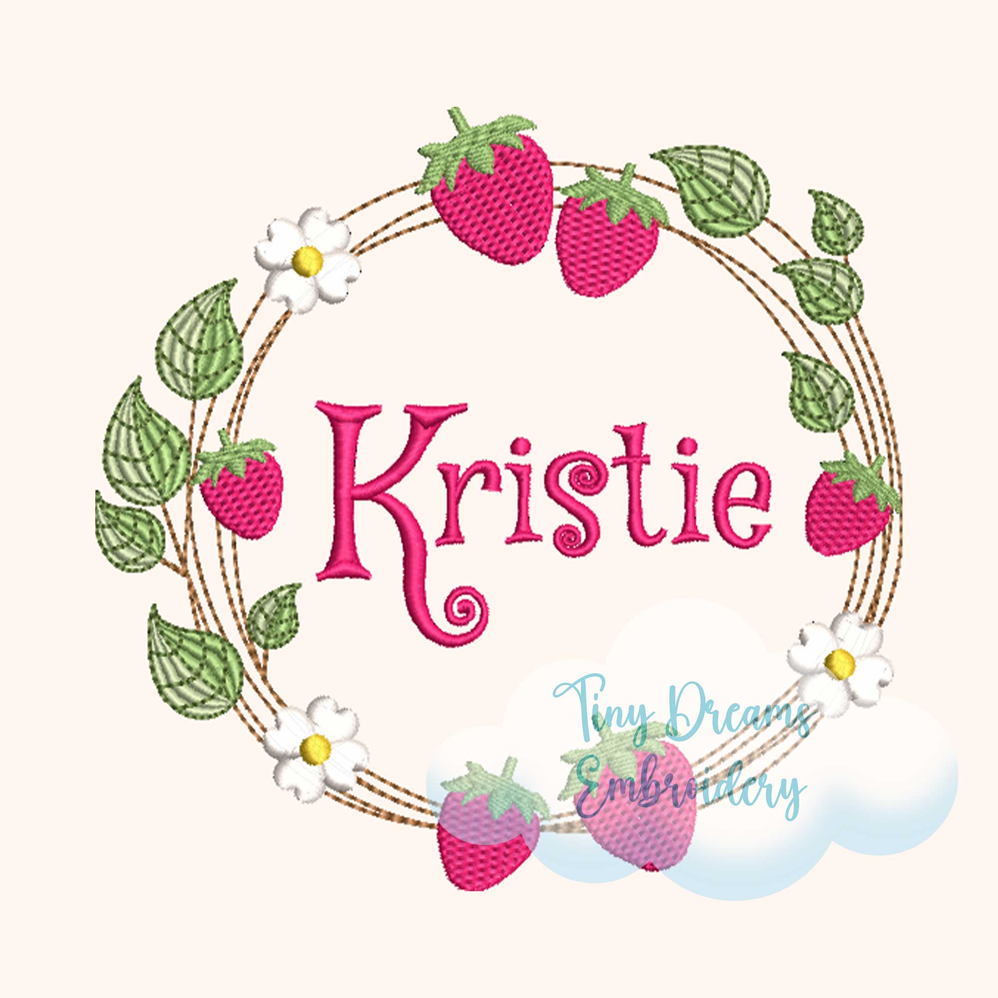 Strawberry Digital Machine Embroidery Design Berry Custom Monogram Design Embroidery Floral Spring Wreath Personalized Name Embroidery