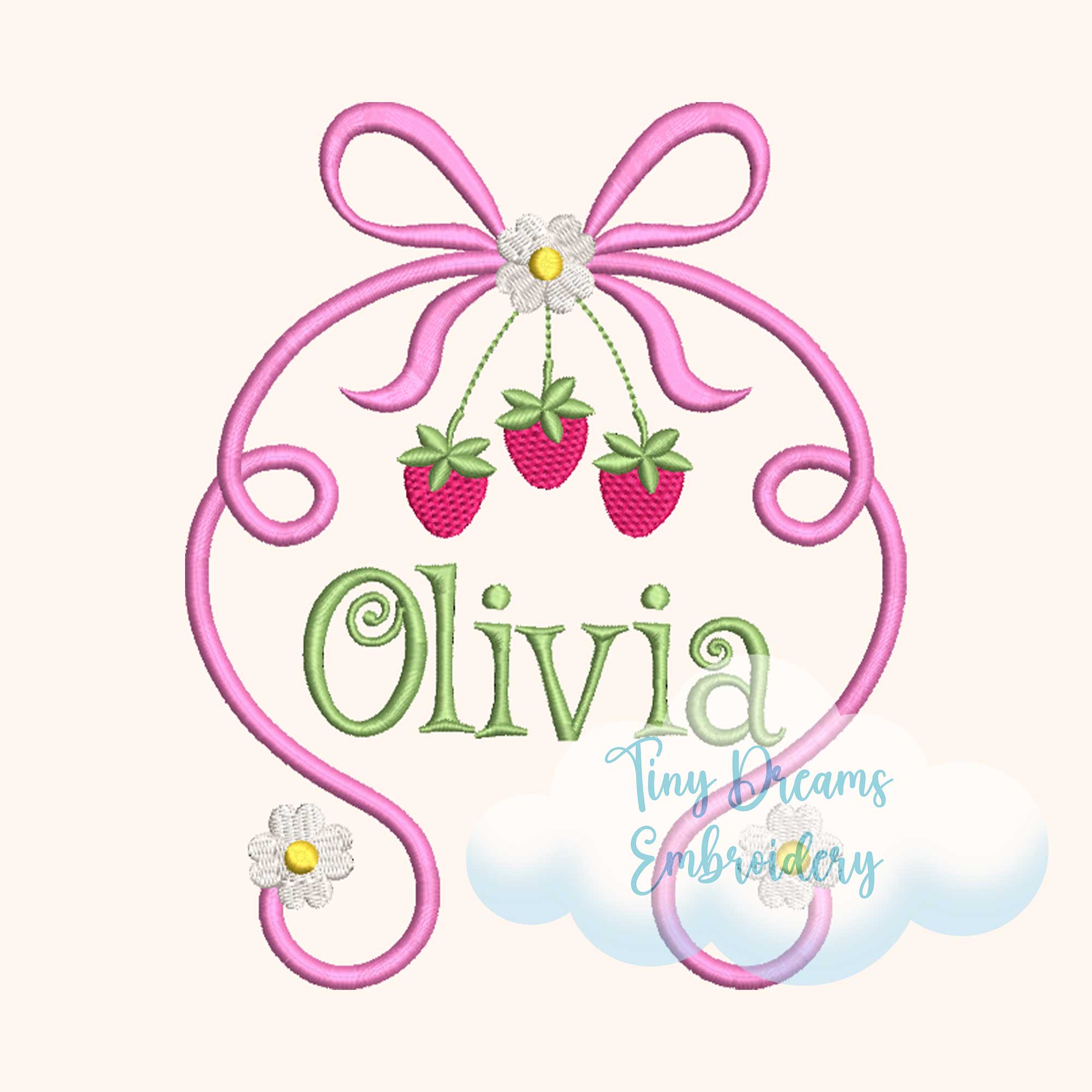 Strawberry Bow Digital Machine Embroidery Design Berry Custom Monogram Design Embroidery Floral Spring Coquette Personalized Name Embroidery