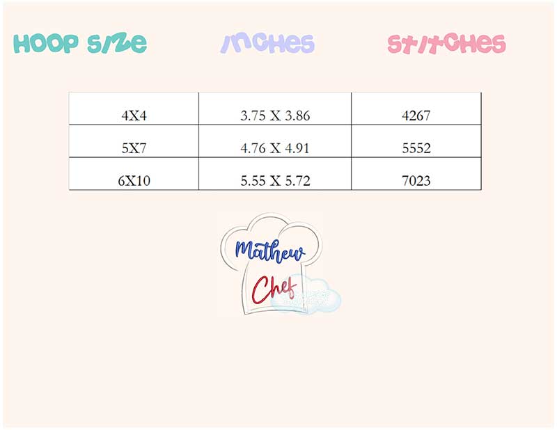 Chef cooker hat monogram/name (name/monogram/font not included) embroidery design