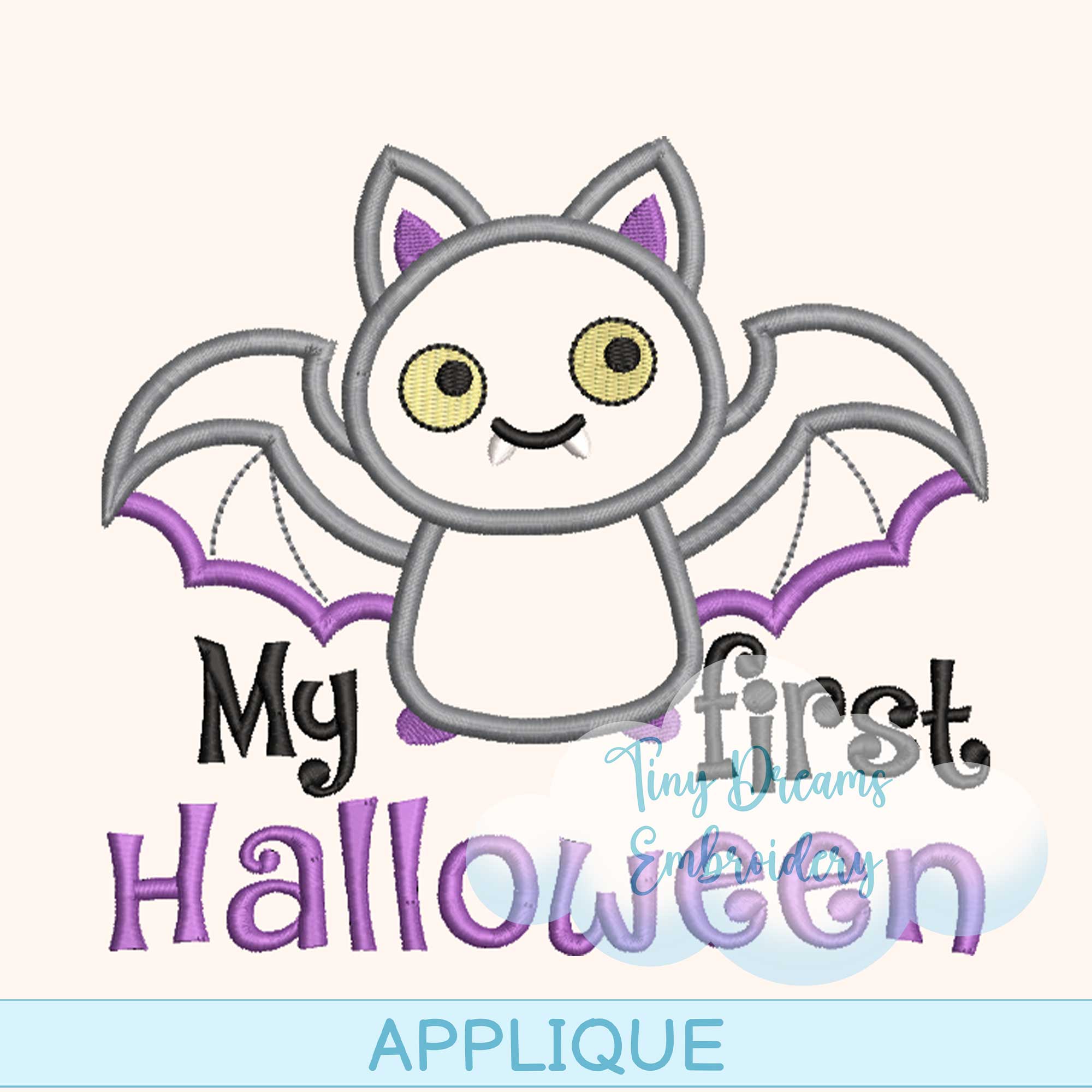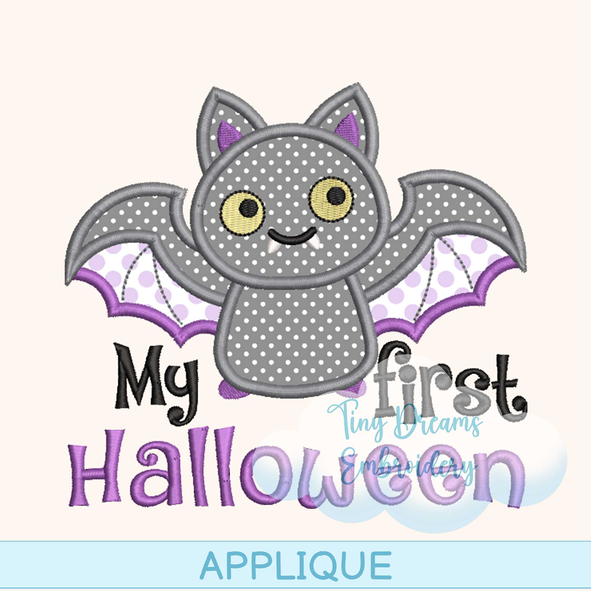 My First Halloween Applique Digital Machine Embroidery Design Cute Bat Embroidery Design Applique First Halloween Baby Boy Girl Embroidery