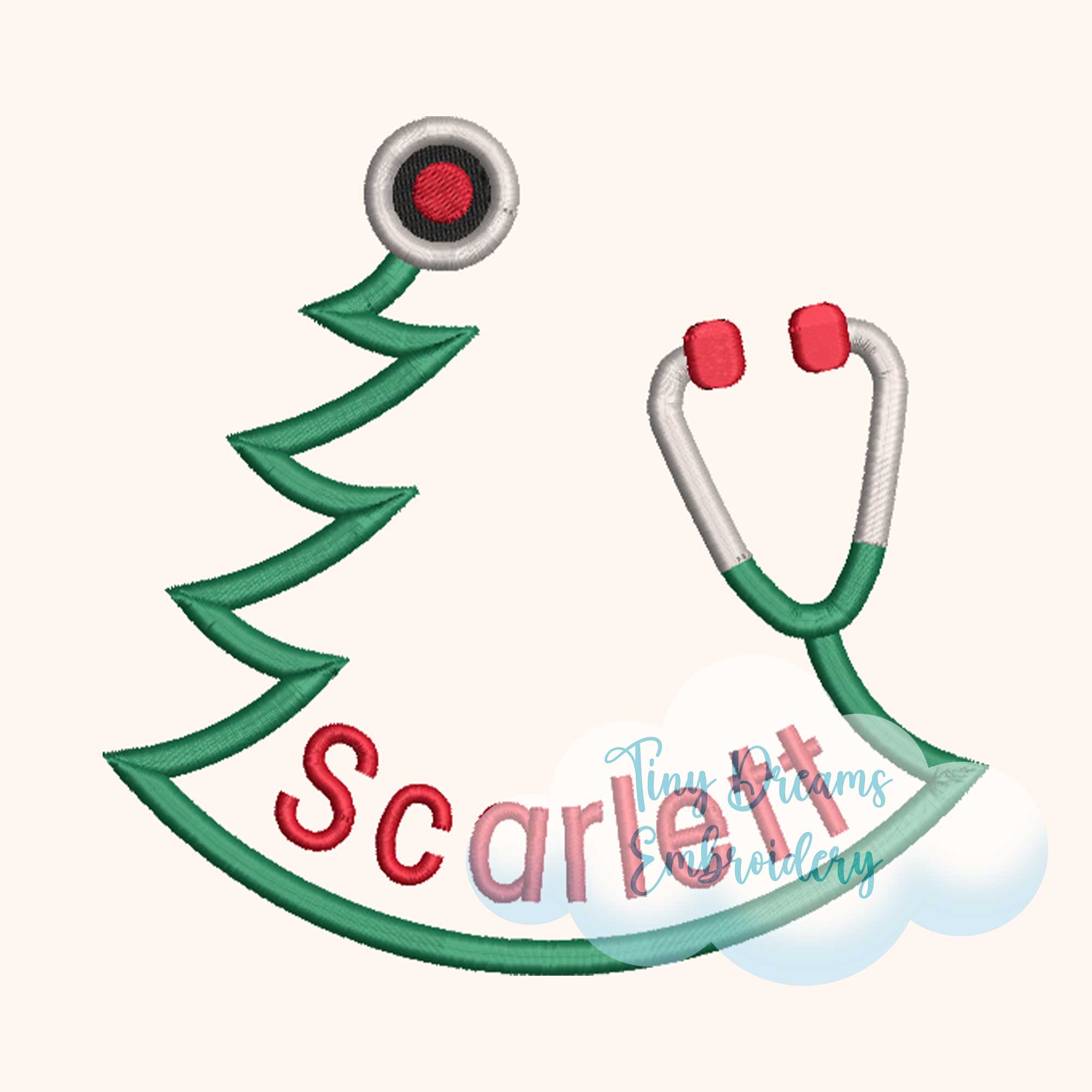 Christmas Tree Nurse Digital Machine Embroidery Design Stethoscope Monogram Medical Doctor Christmas Personalized Name Embroidery Design
