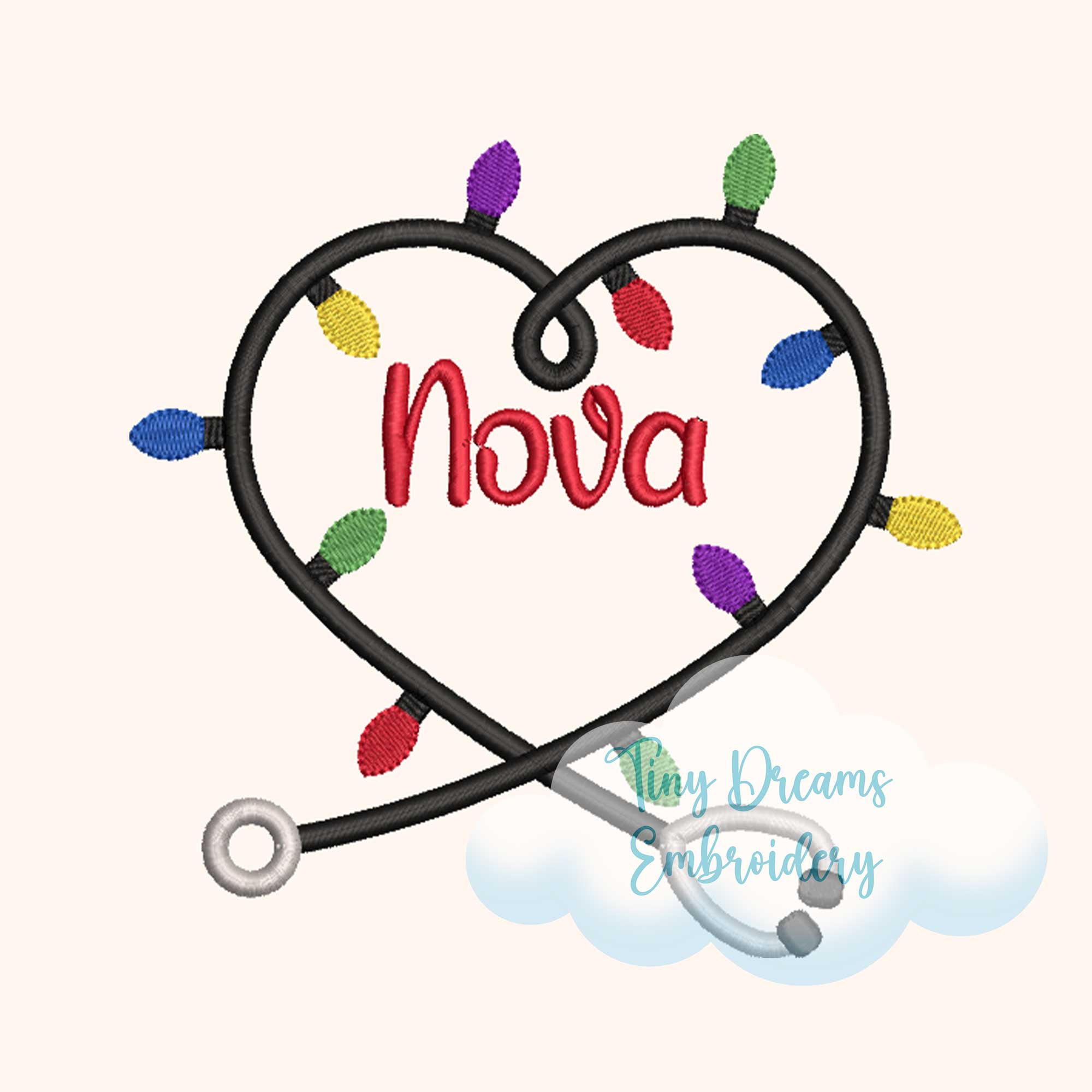Christmas Lights Nurse Digital Machine Embroidery Design Stethoscope Monogram Medical Doctor Christmas Personalized Name Embroidery Design