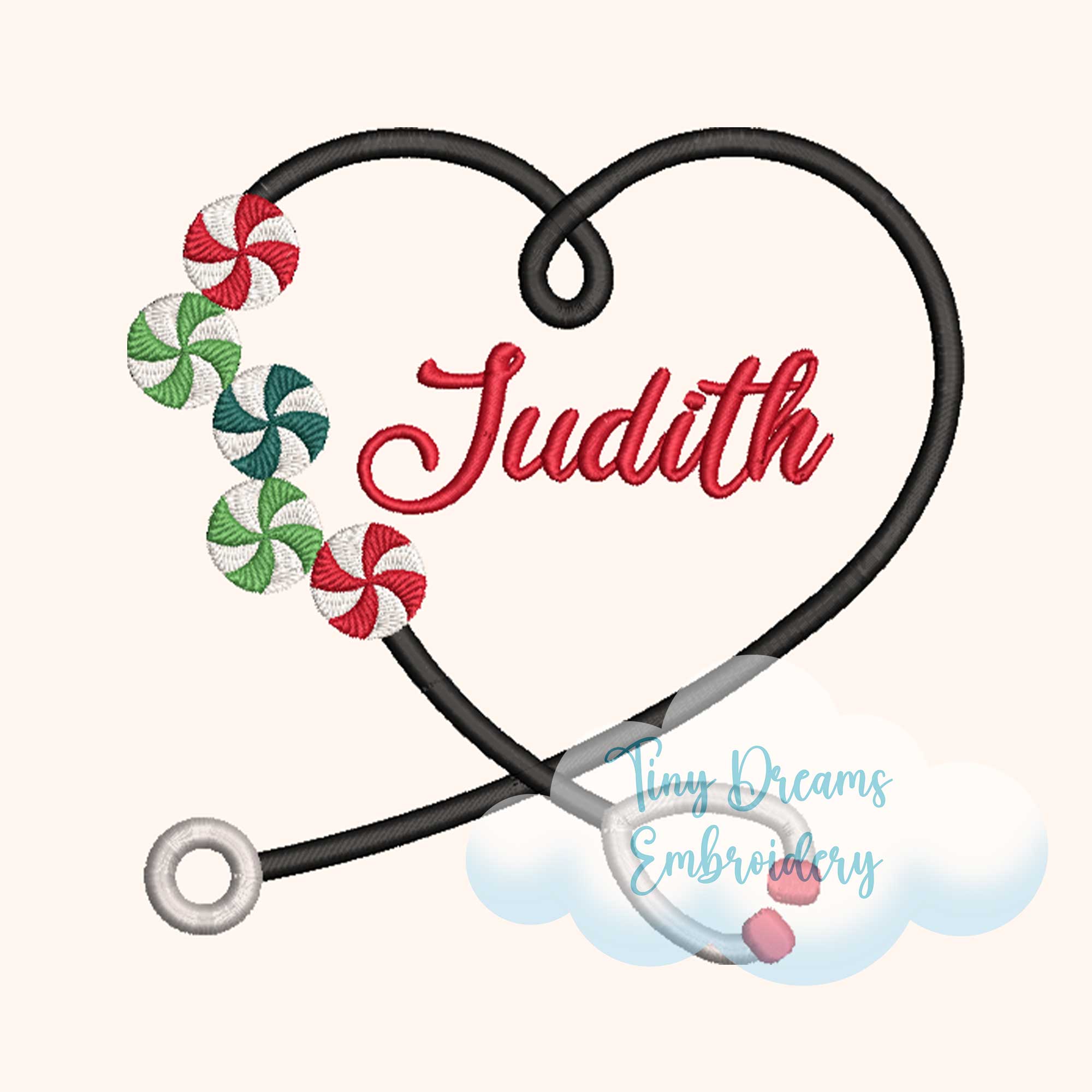 Christmas Candy Nurse Digital Machine Embroidery Design Stethoscope Monogram Medical Christmas Peppermint Candy Personalized Name Embroidery