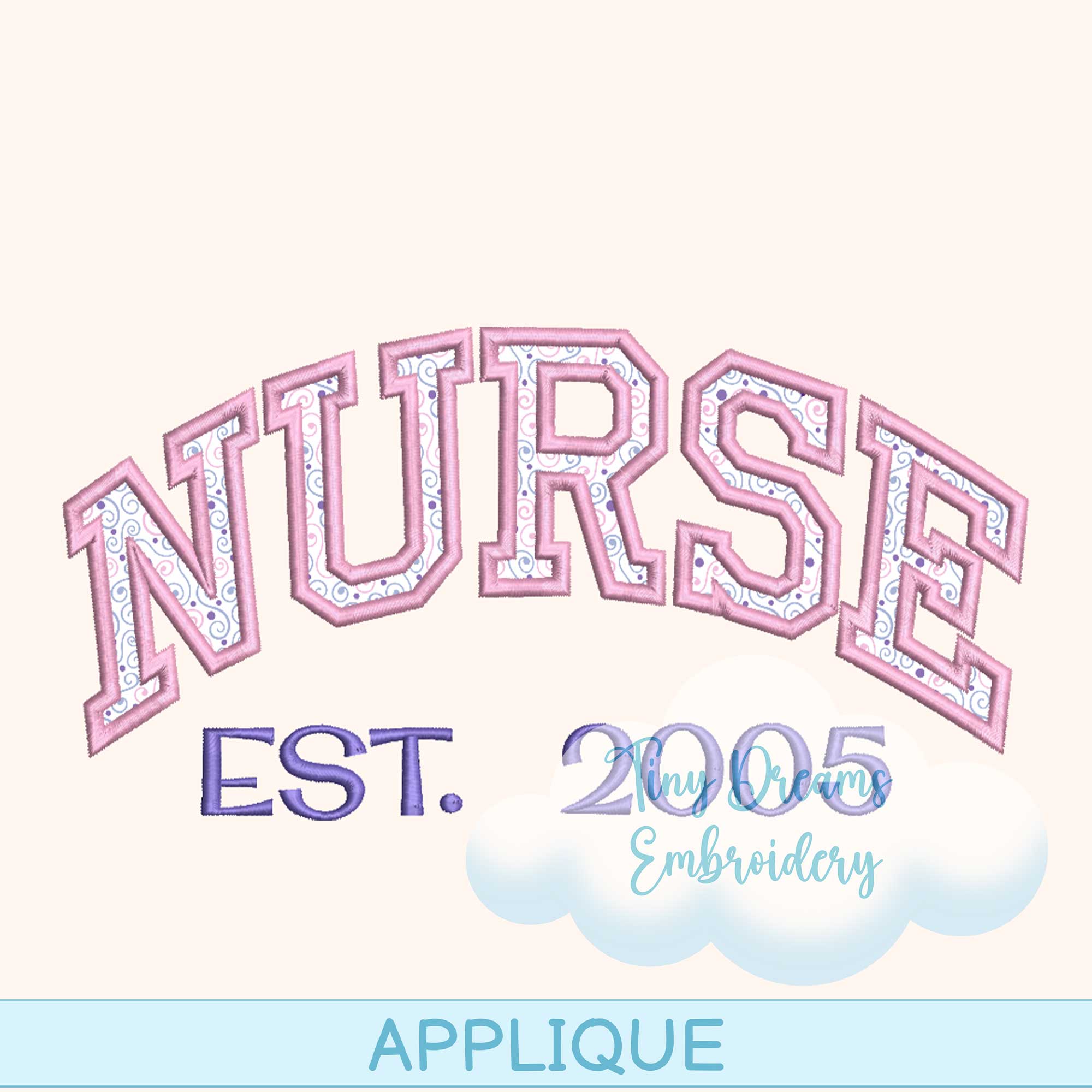 Nurse Applique Digital Machine Embroidery Design Established Date Applique Design Embroidery Medical Graduated Nurse Embroidery Applique