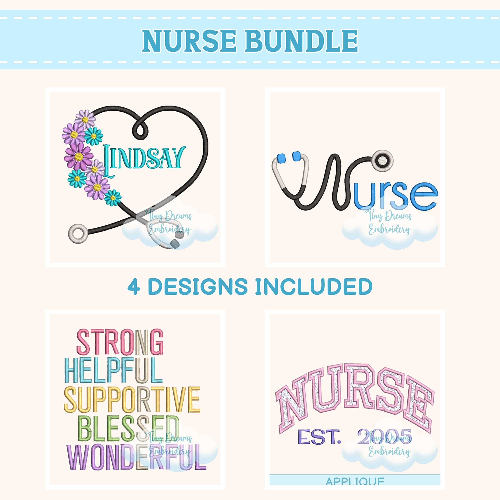 Nurse 4 Design Bundle Digital Machine Embroidery Design Stethoscope Nurse Design Embroidery Monogram Strong Blessed Wonderful Nurse Applique