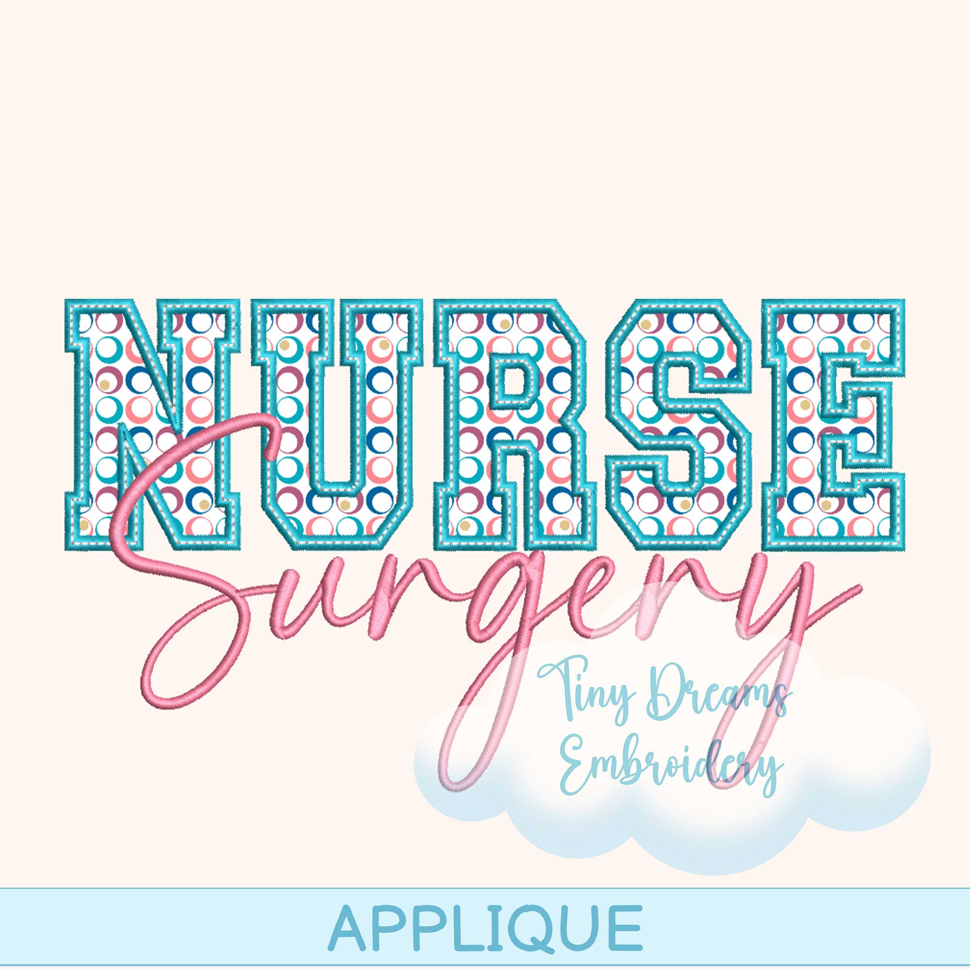 Surgery Nurse Digital Machine Embroidery Design Applique Procedure Nurse Embroidery Design Surgical Applique Embroidery Special Care Nurse