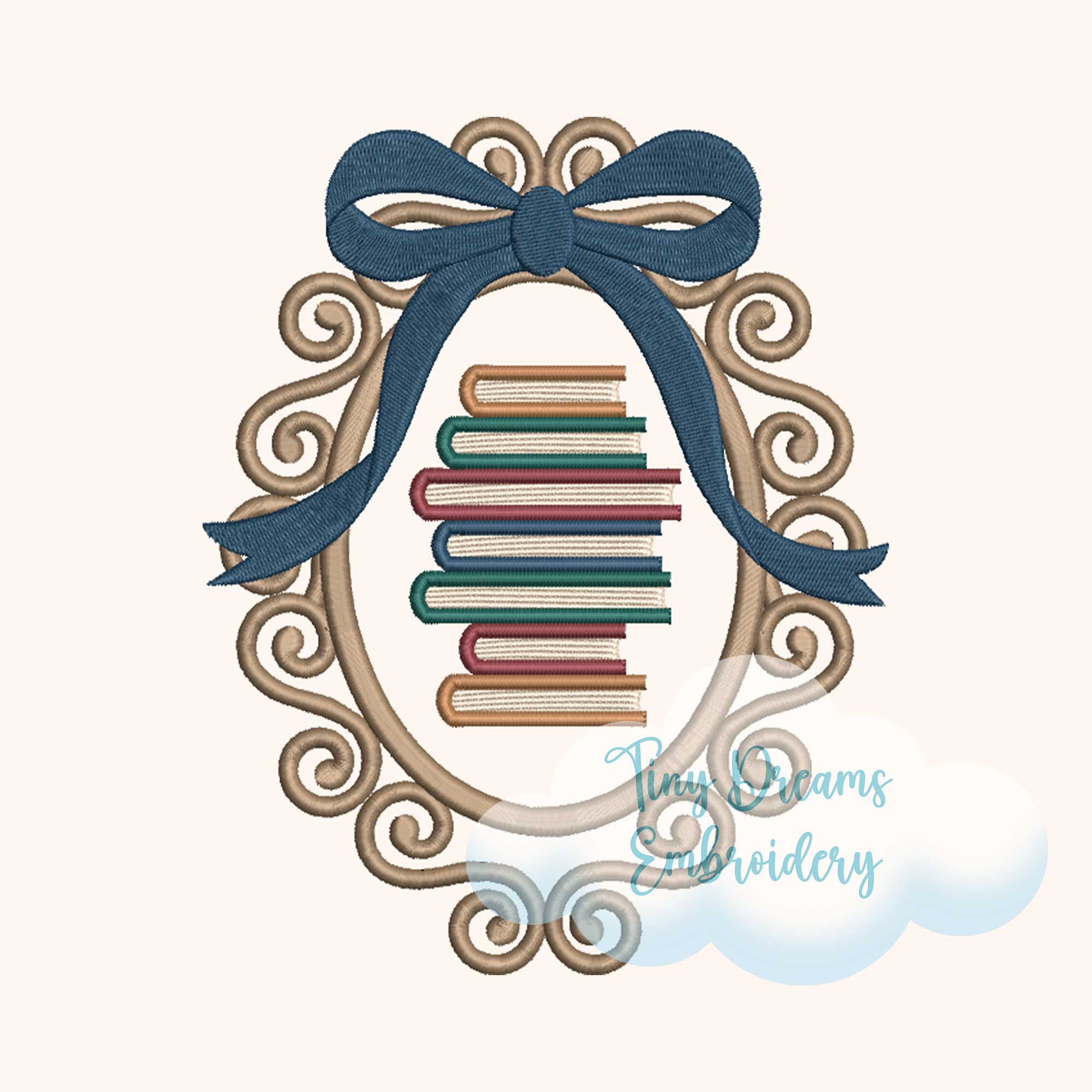 Books Cameo Digital Machine Embroidery Design Cameo Border Bow Embroidery Design Reading Pillow Embroidery Read Book Embroidery Book Club