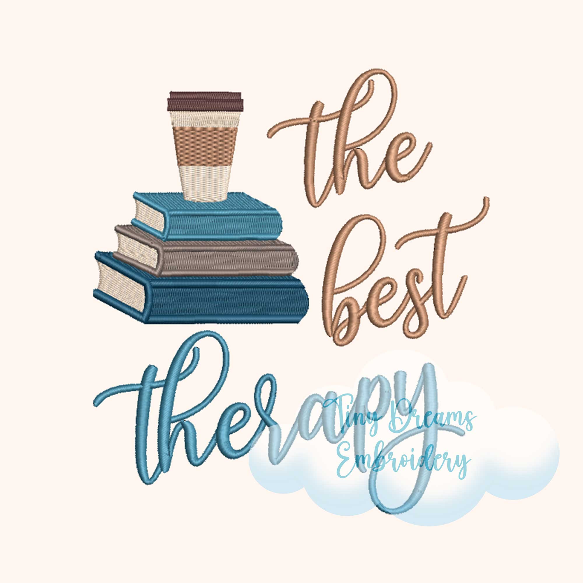 Books Coffee Therapy Embroidery Design: Cozy Coffee Embroidery Machine (Digital Download)