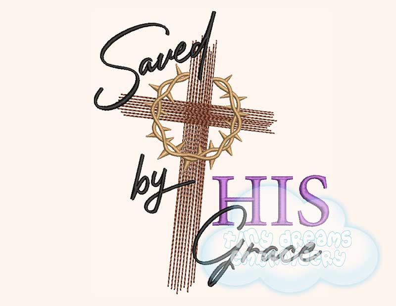 Saved by His grace Easter cross and Crown of thorns embroidery design