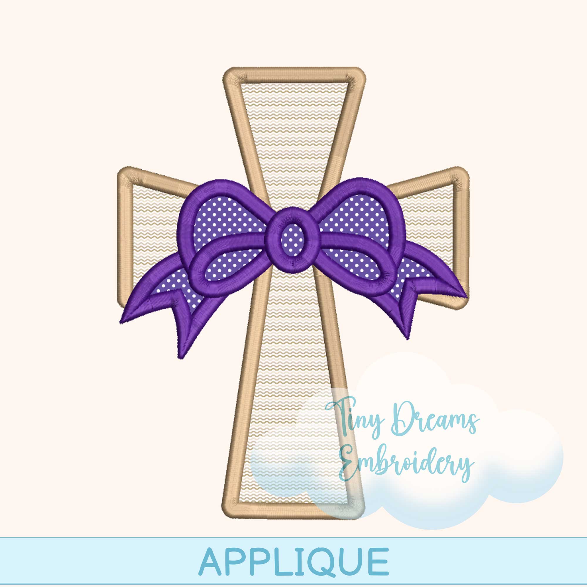 Ribbon Cross Digital Machine Embroidery Design Applique Bow Easter Cross Embroidery Design Applique Easter Jesus Applique Embroidery Design