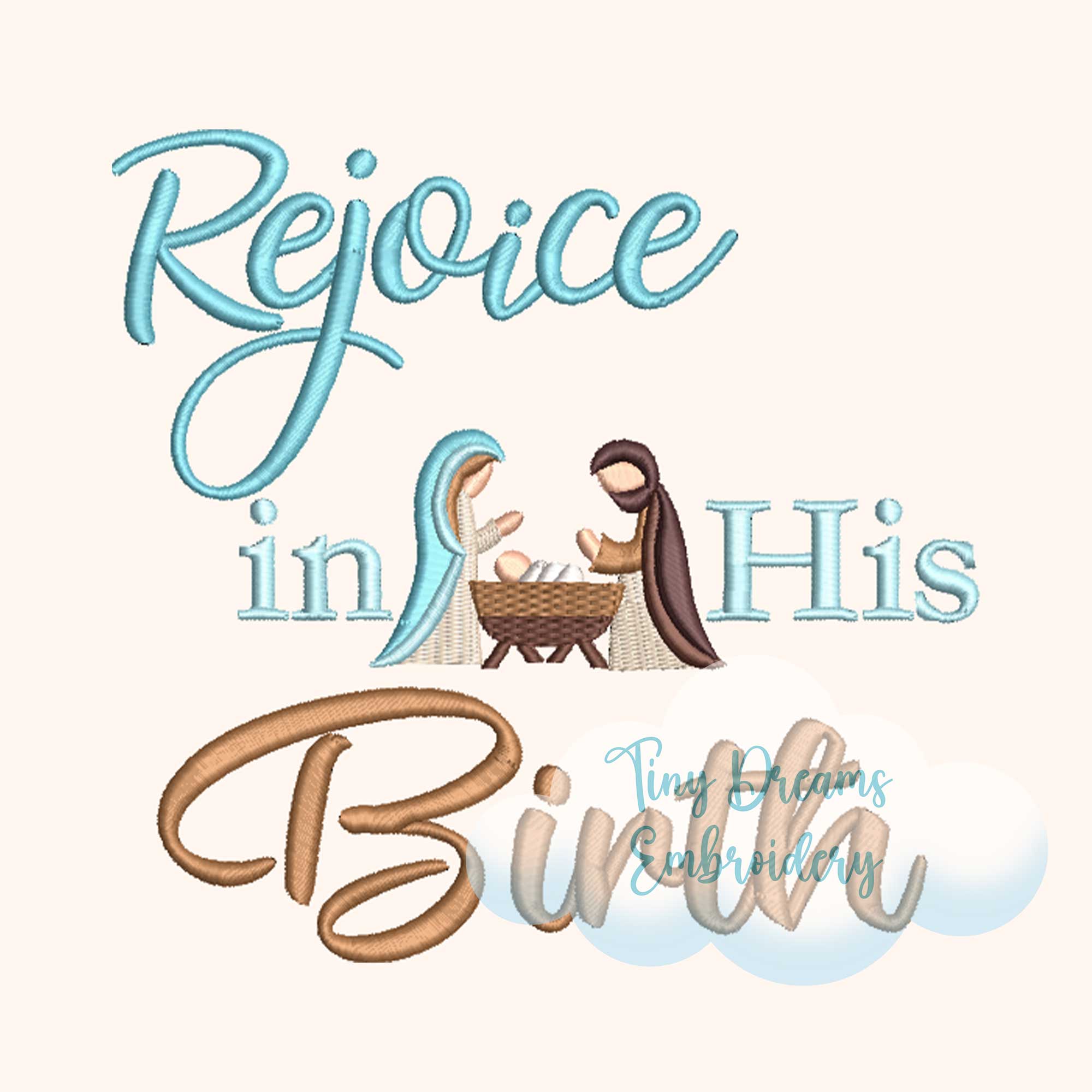 Rejoice His Birth Christmas, Baby Jesus, Virgin Mary, Joseph: Machine Embroidery Design (Digital Download)