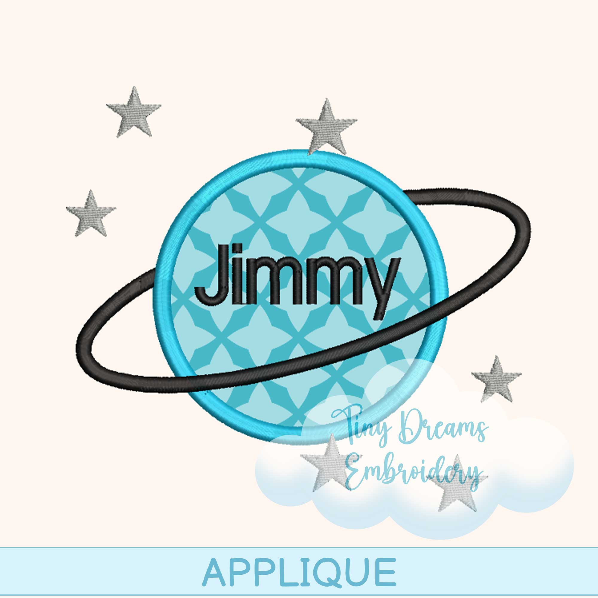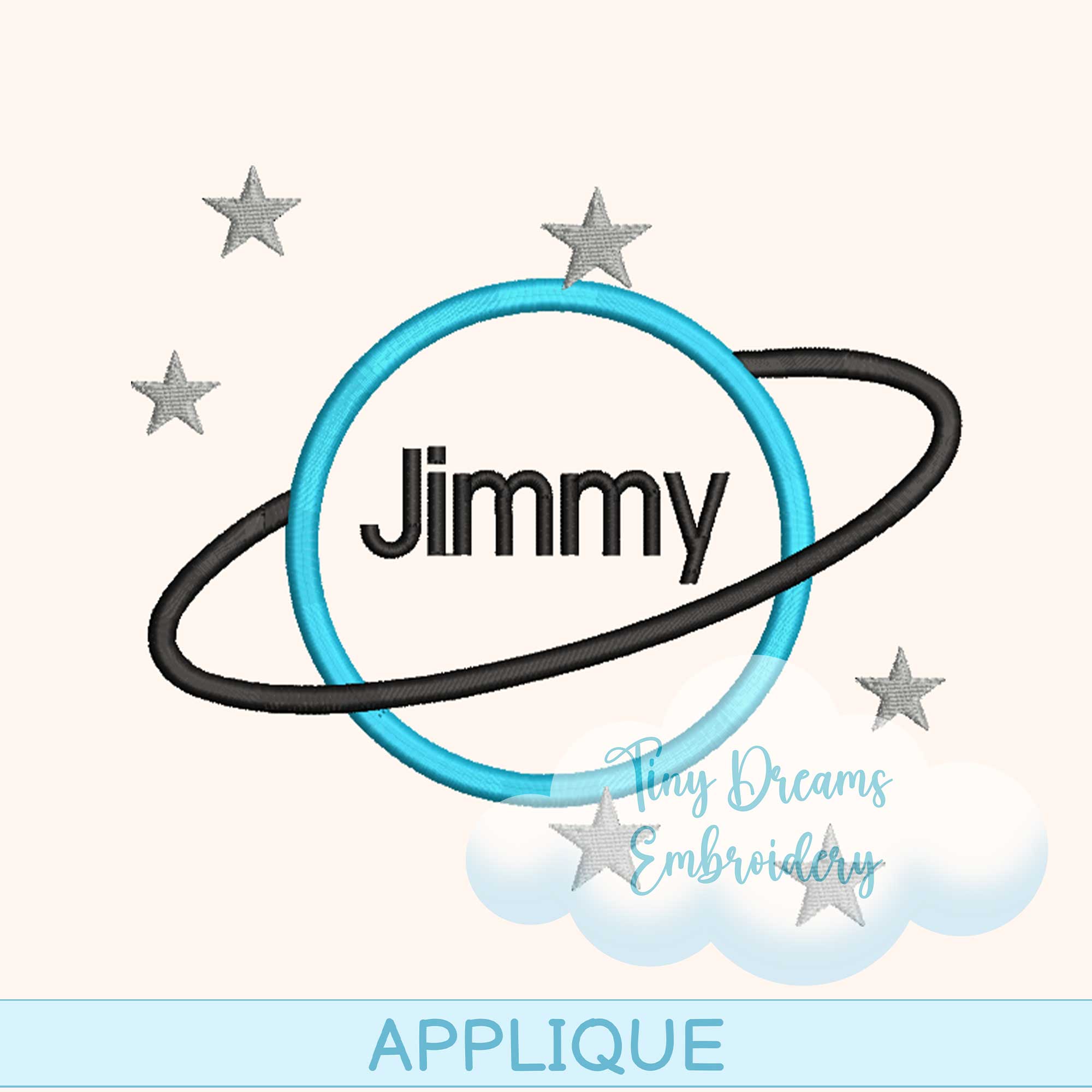 Planet Applique Digital Machine Embroidery Design Monogram Saturn Planet Applique Design Embroidery Boy Personalized Name Baby Applique