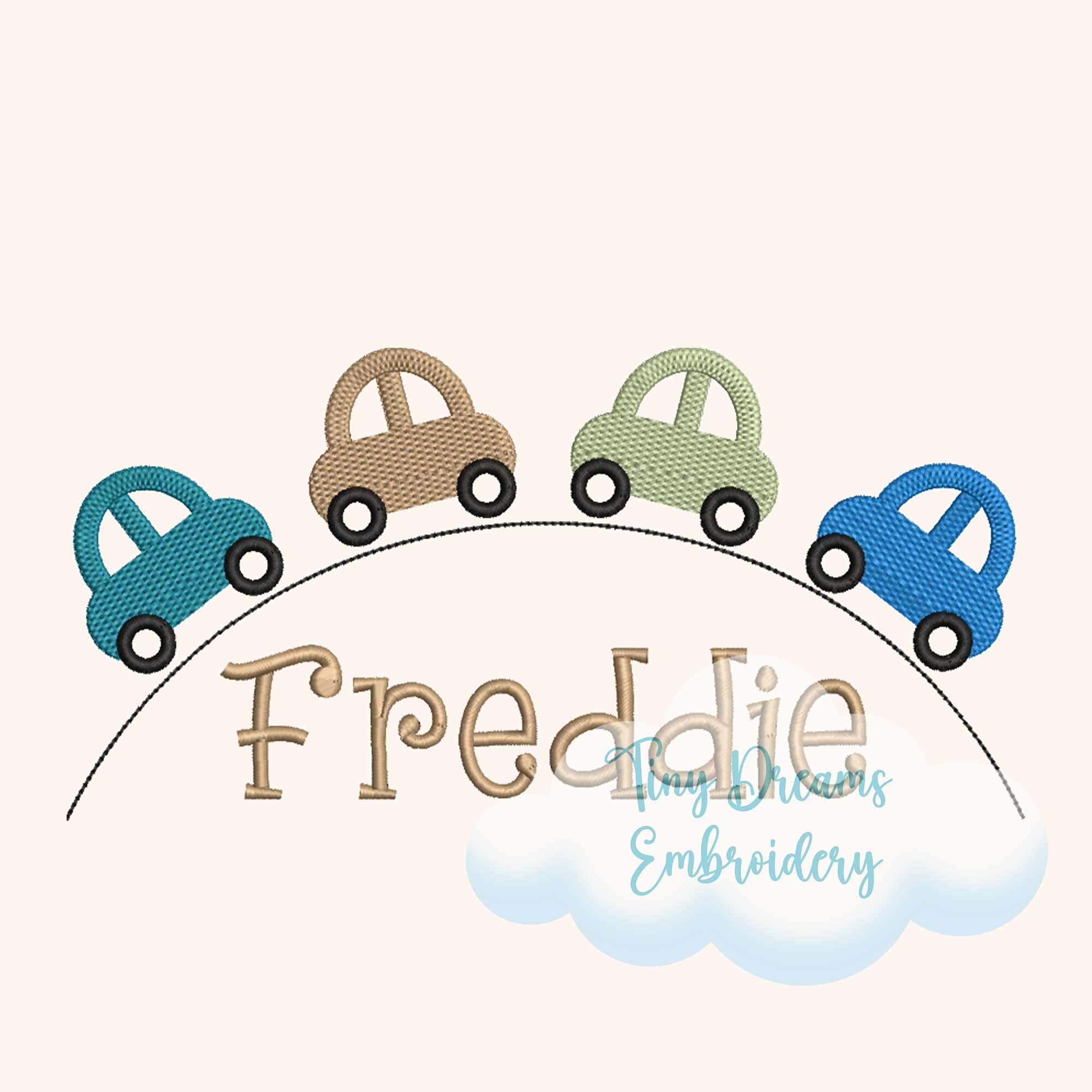 Multiple Tiny Cars Embroidery Design: Custom Boy Monogram Name (Digital Download)