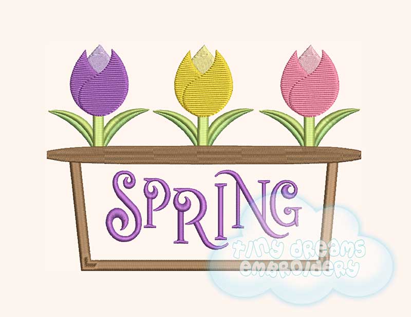 Spring tulips in flowerpot name/monogram (name/monogram/font not included) embroidery design