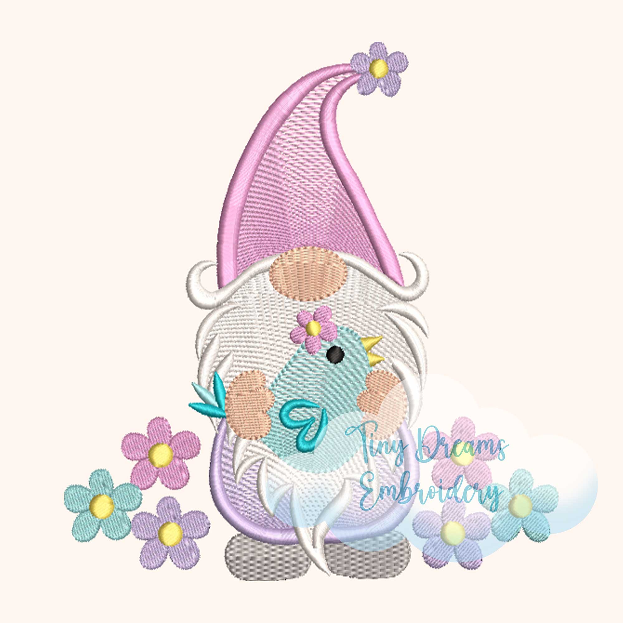 Spring Gnome Digital Machine Embroidery Design Cute Baby Bird Design Embroidery Floral Embroidery Design Flower Gnome Embroidery Design Bird