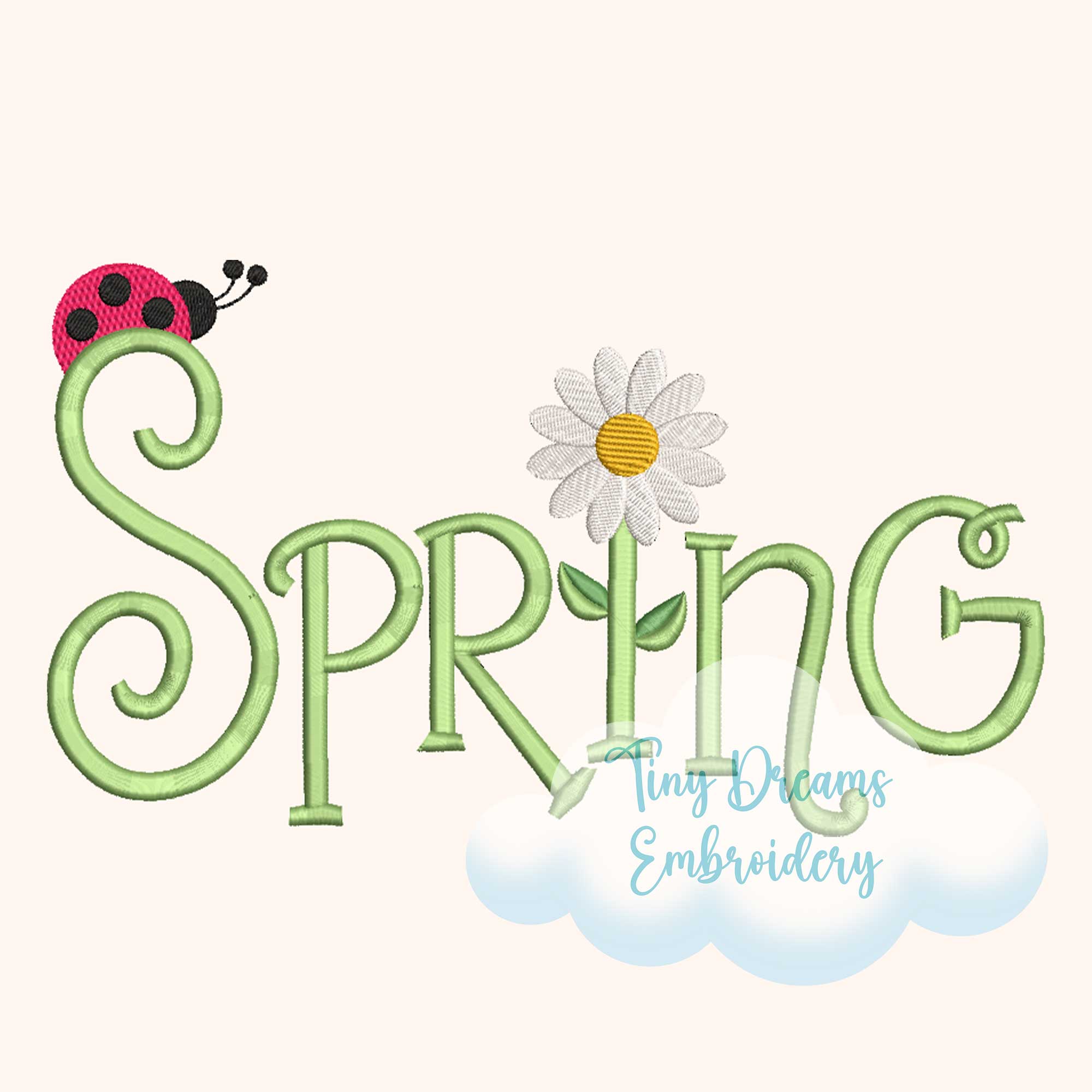 Spring flowers ladybyg bunny rainbow easter words embroidery design