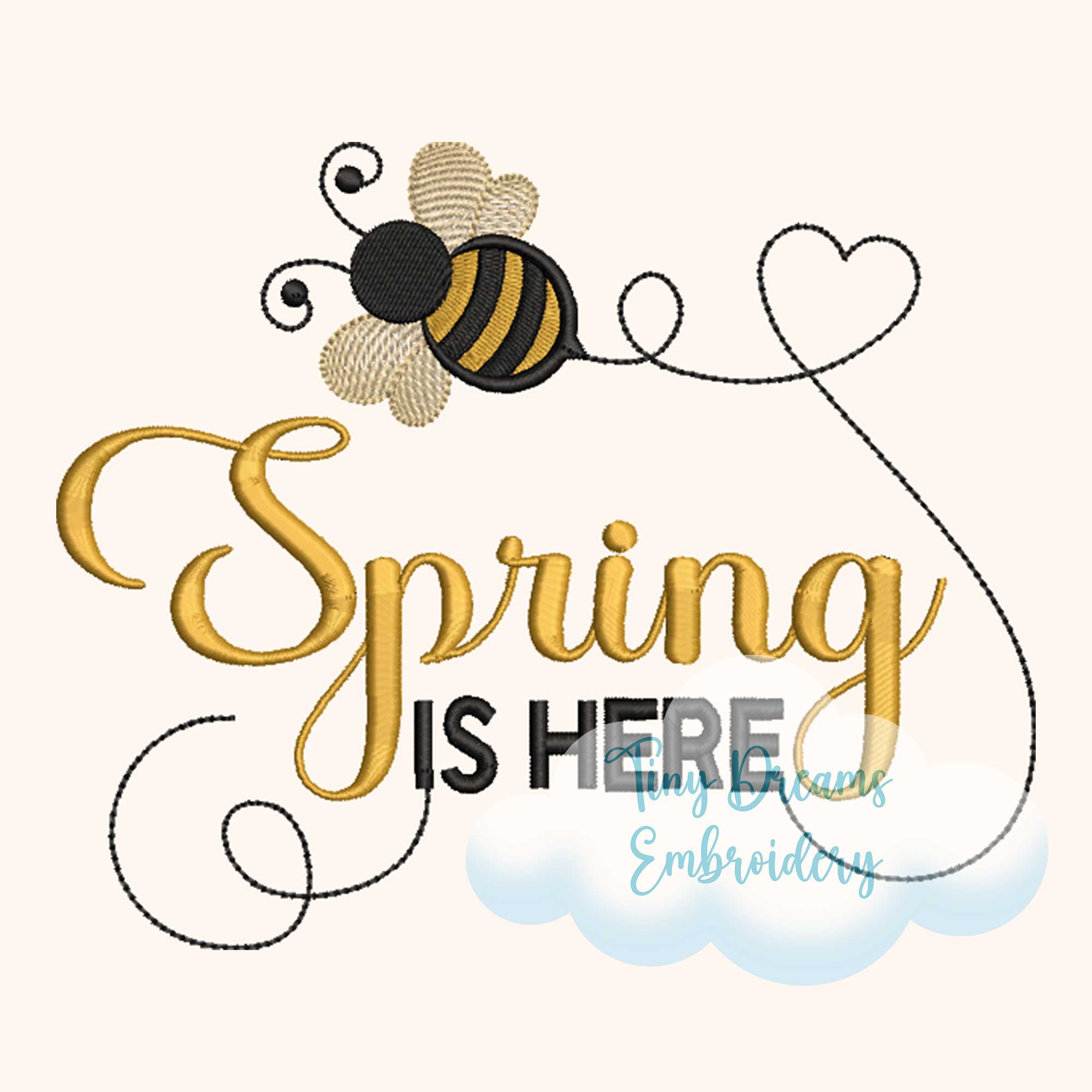 Spring Here Digital Machine Embroidery Design Cute Bee Embroidery Design Spring Season Embroidery Design Flying Bee Embroidery Design
