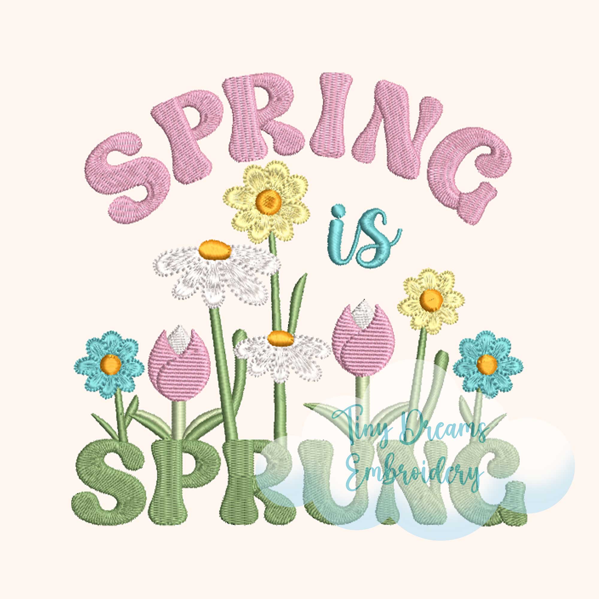 Spring Is Sprung Digital Machine Embroidery Design Daisy Floral Design Embroidery Spring Garden Embroidery Design Tulip Flower Embroidery