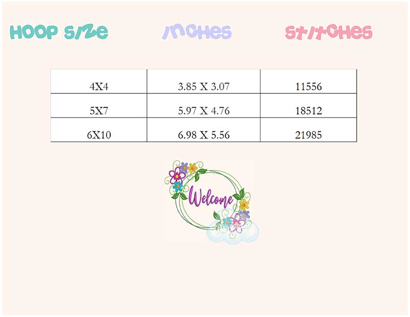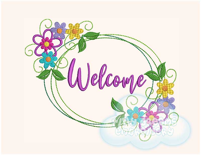 Welcome flower wreath embroidery design