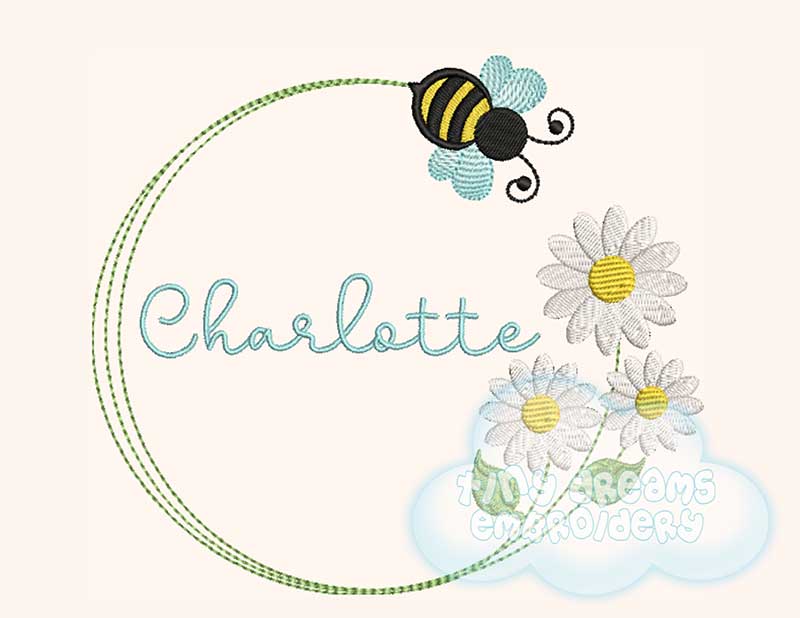 Floral Bee Digital Machine Embroidery Design Monogram Daisy Flower Custom Monogram Embroidery Design Baby Bee Personalized Girl Name Design