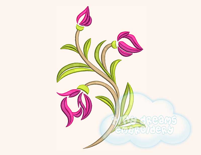 Floral Applique Digital Machine Embroidery Design Flower Spring Watering Can Embroidery Design Applique Flower Daisy Tulip Embroidery Design