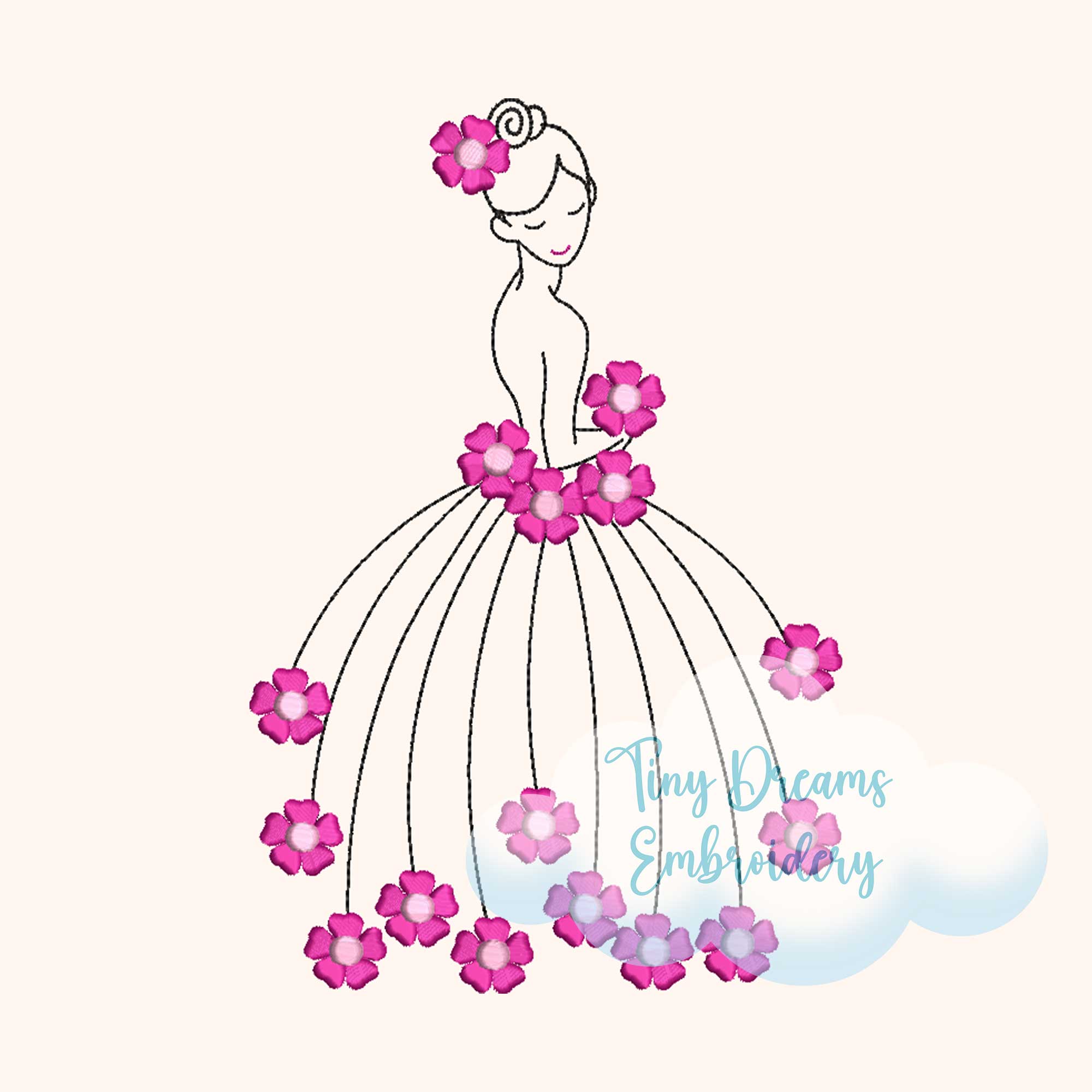 Floral Ballerina Digital Machine Embroidery Design Dance Girl Embroidery Design Flower Spring Design Embroidery Ballet Dance Girl Embroidery